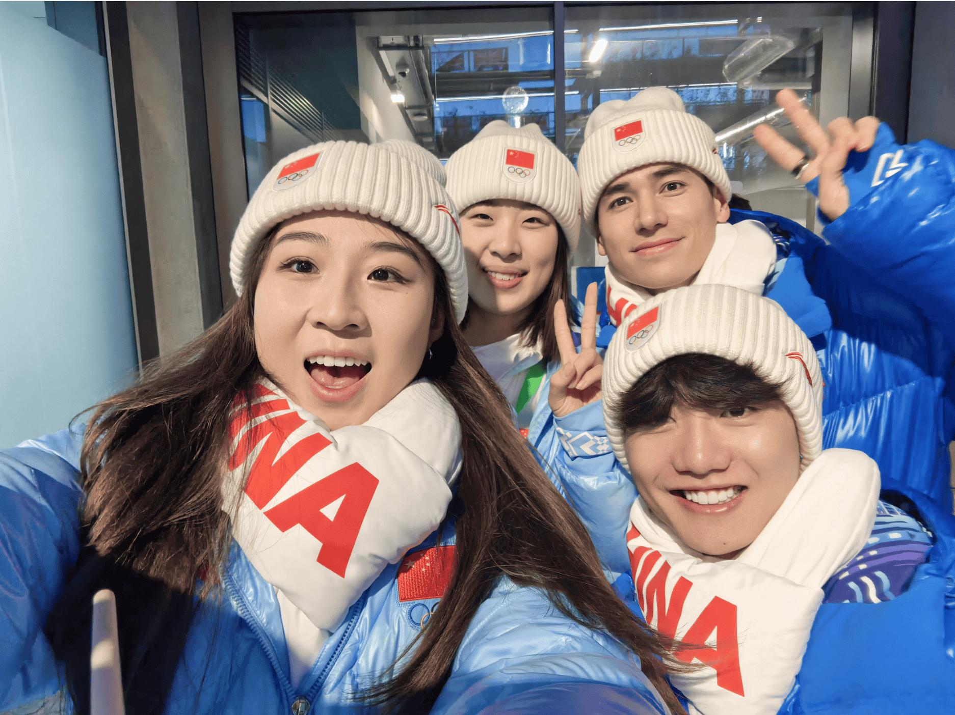 虎扑02月07日讯今天下午,中国短道速滑队队员公俐更新社媒,分享中国短道速滑全队在冬奥会标志性的五环雕塑前的大合照,以及一些自己参加开幕式的现场照片。