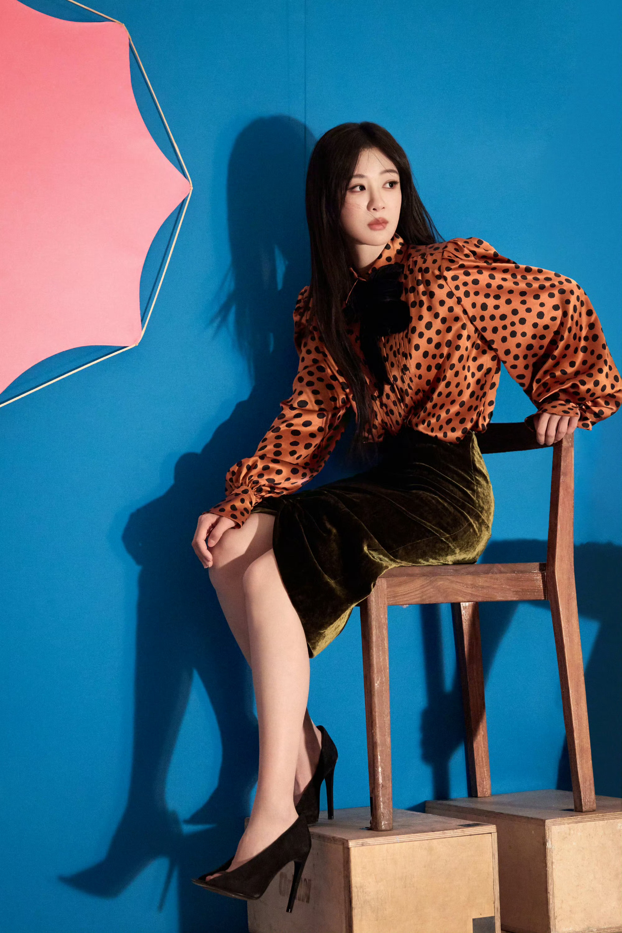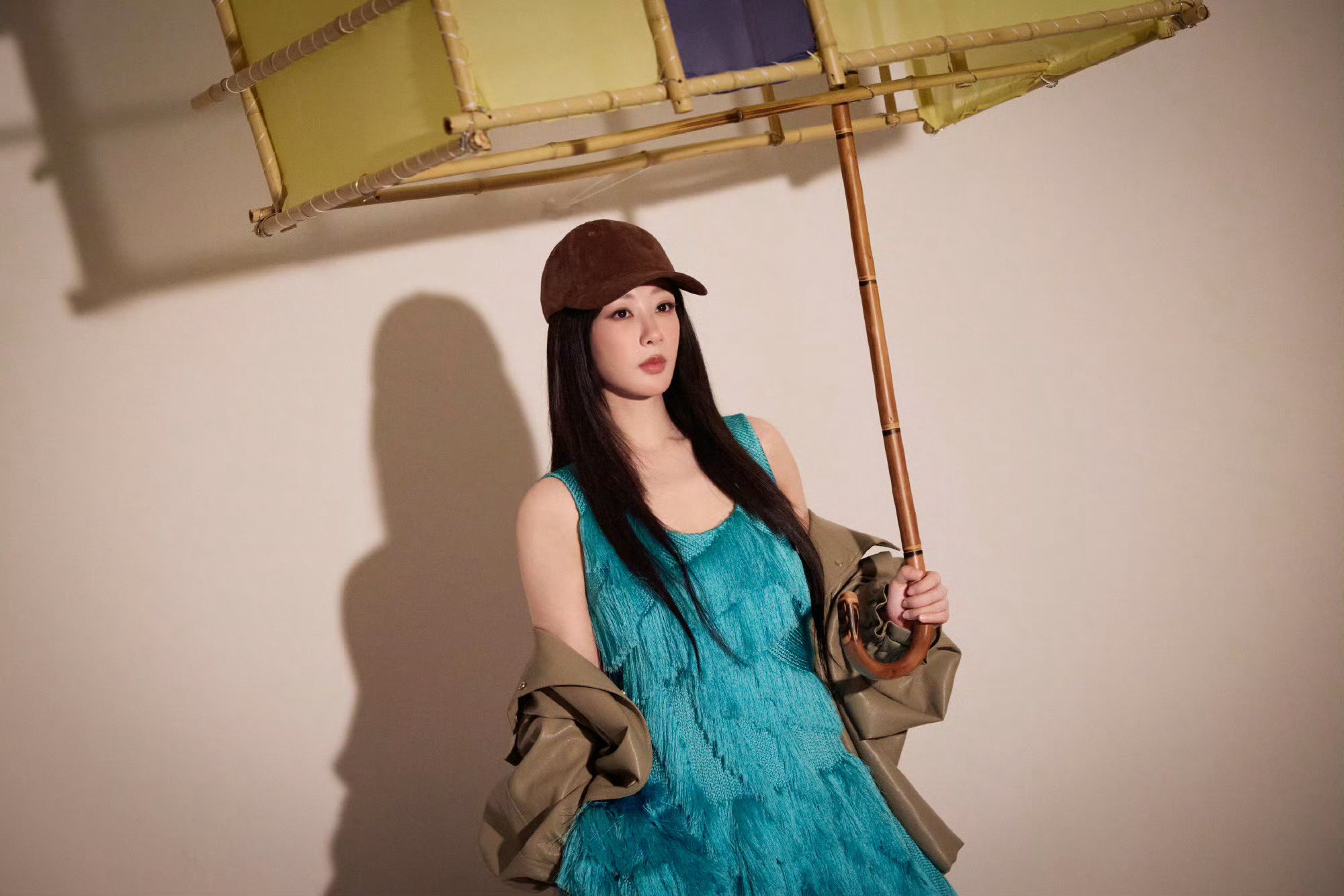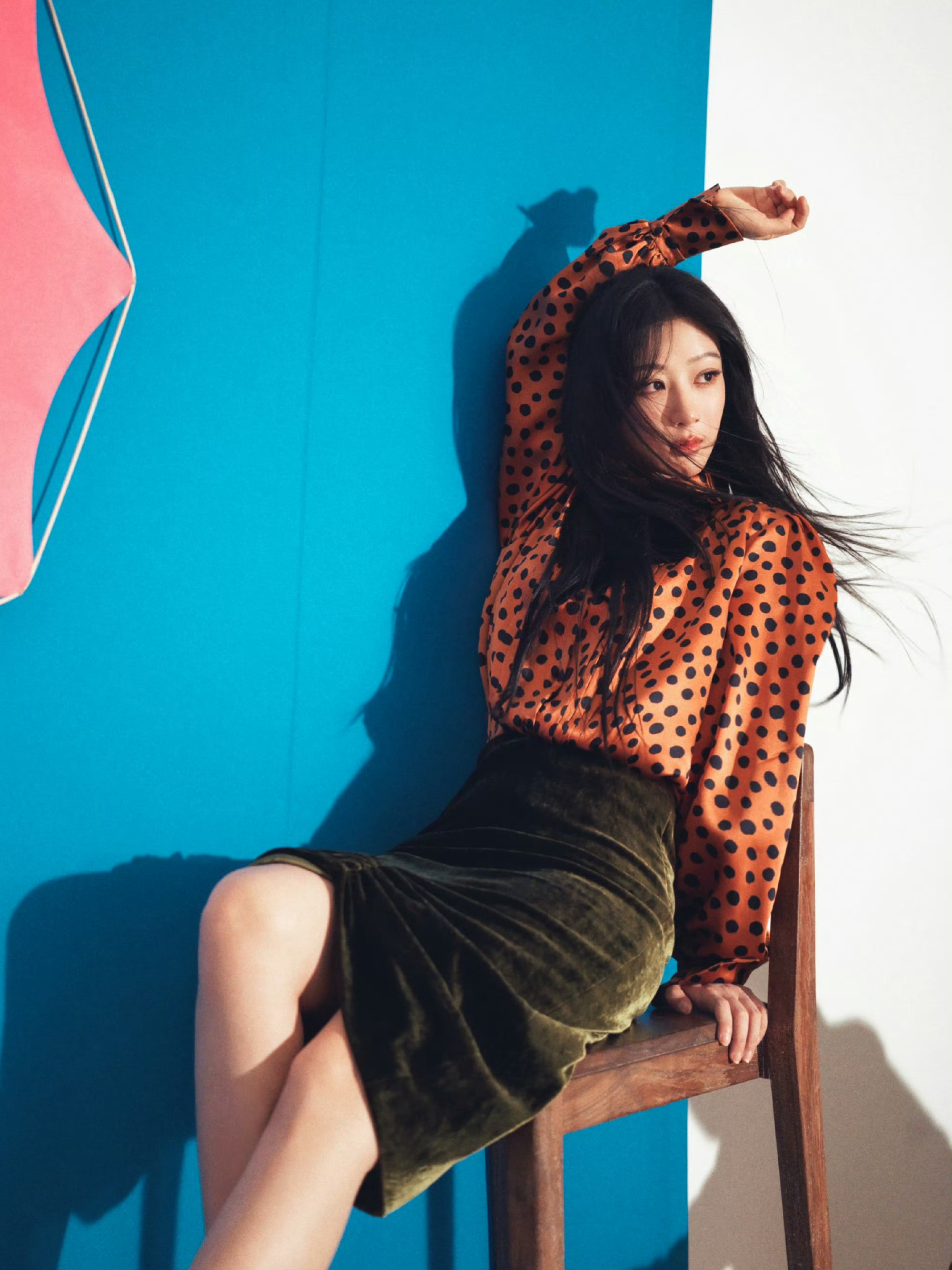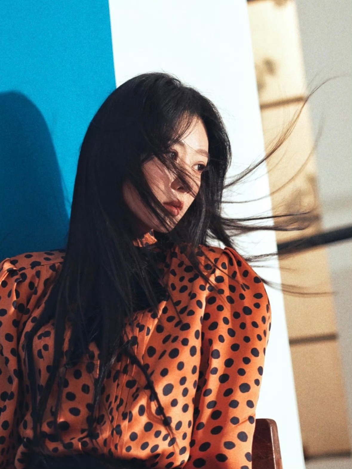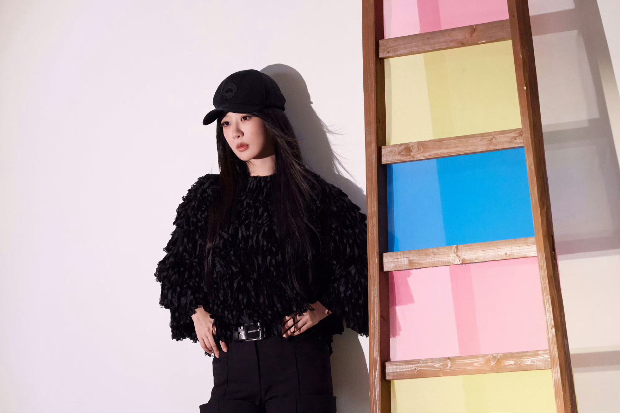 杨紫松弛美丽的美貌~长发飘飘,靓丽紫