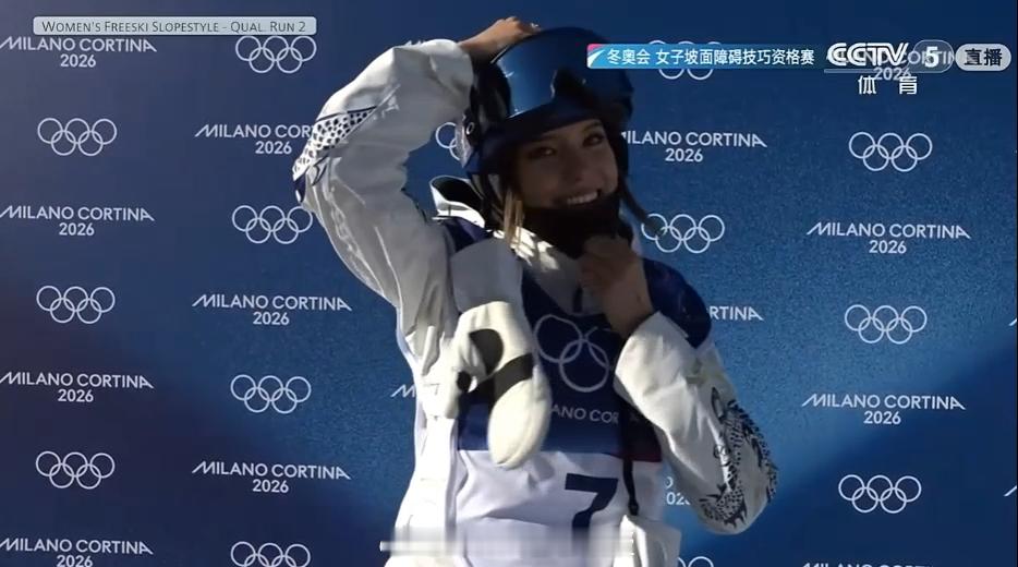 谷爱凌第二滑流畅丝滑谷爱凌调整能力 谷爱凌笑了 谷爱凌第二轮拿到75.30的高分