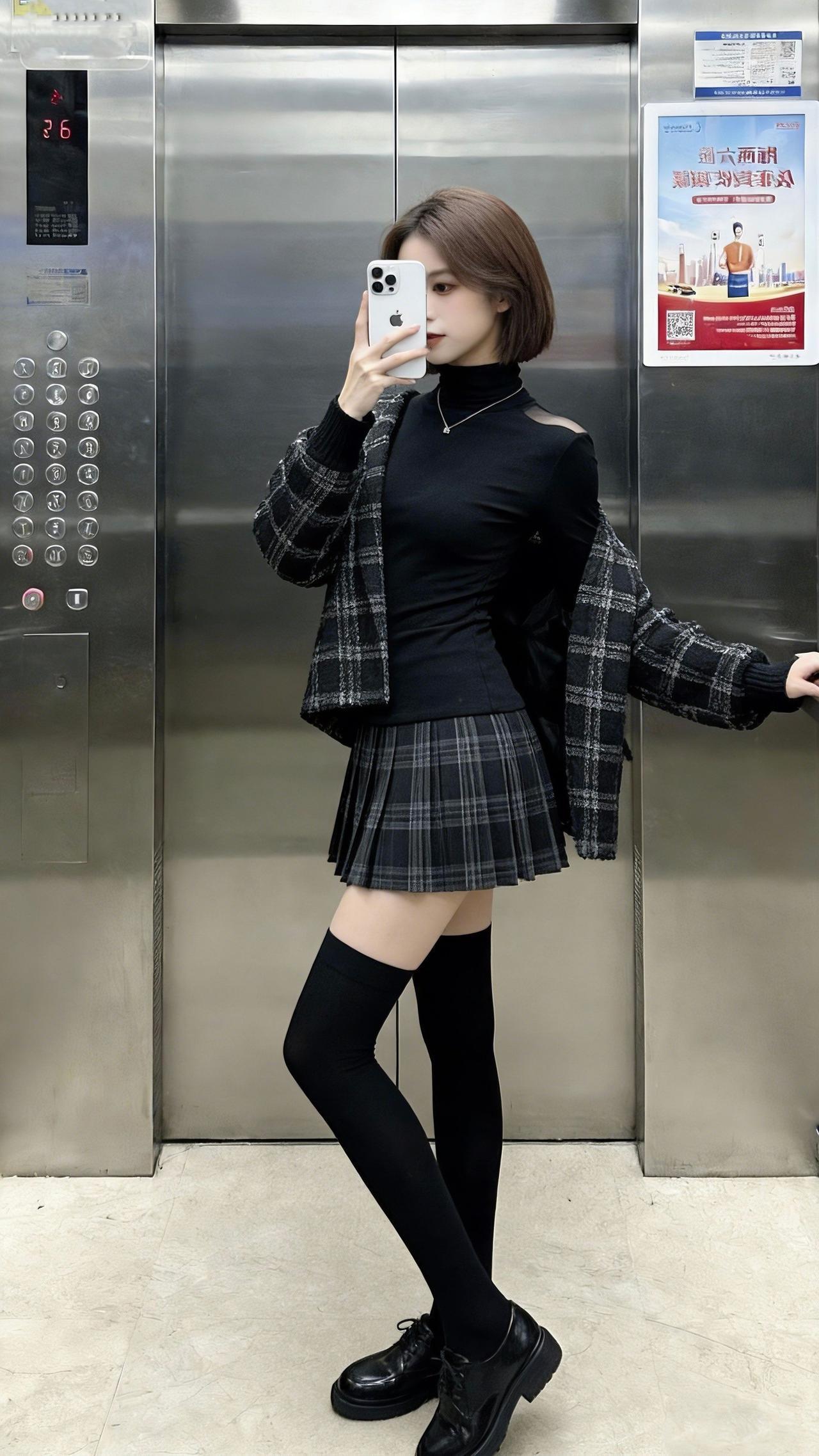 告诉我,谁扰了你的梦?电梯拍照 日常分享 穿搭分享 黑色控