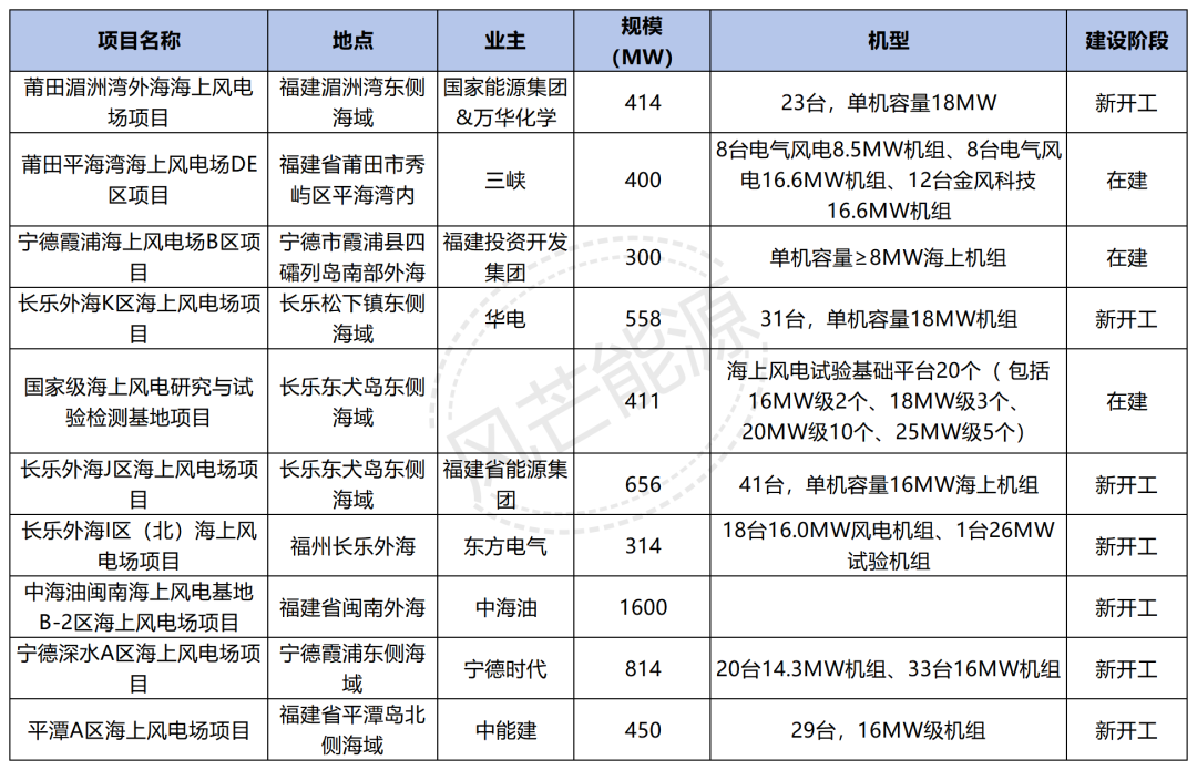 其中,10个海上风电项目作为高效清洁电源入选福建省重点项目,规模5917MW,业主涉及三峡集团、华电集团、东方电气、中能建等。