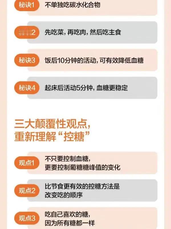 春节不节食还能瘦,就按这个顺序吃。不用节食,靠科学饮食顺序,即可平稳血糖,减轻体重。 正确的顺序是先吃蔬菜再吃蛋白和脂肪,最后吃碳水。科学依据是膳食纤维和蛋白质消化慢,同时膳食纤维会包裹碳水,更加延缓了肠道的吸收速度,从而避免血糖骤升骤降,减少脂肪储存。若先吃碳水,碳水吸收快,血糖会像过山车一样骤升,血糖快速飙升,身体会分泌大量胰岛素,胰岛素把多余血糖转化为脂肪储存。胰岛素还会让血糖快速下降引发饥饿,导致暴饮暴食、吃更多高热量食物。法国生物化学家杰西·安佐斯佩在他的健康科普书《控糖革命》里提出了进食顺序的重要性。在书中他还给出了10个轻松控糖的窍门∶1. 进食顺序:先吃膳食纤维→再吃蛋白质/健康脂肪→最后吃碳水/淀粉,可降血糖峰值约73%、胰岛素峰值约48%。2. 餐前吃点醋:延缓胃排空,平稳餐后血糖。3. 主食换“粗”的:选全谷物、杂豆替代精制碳水。4. 甜品配蛋白/脂肪:吃甜食时搭配坚果、奶酪等,减缓升糖。5. 餐后轻运动:散步10分钟,加速血糖利用。6. 避免空腹吃甜食/果汁:易引发血糖骤升。7. 多喝水:促进代谢,减少假饥饿。8. 充足睡眠:睡眠不足影响胰岛素敏感性。9. 学会看标签:避开添加糖陷阱。10. 规律进食:避免长时间空腹导致暴饮暴食。 读了这本《控糖革命》,我才知道无需放弃喜爱的食物,不用节食,靠科学饮食顺序与简单习惯,即可平稳血糖,改善精力、皮肤、体重从而拥有健康。减肥 健康饮食 控糖 读书