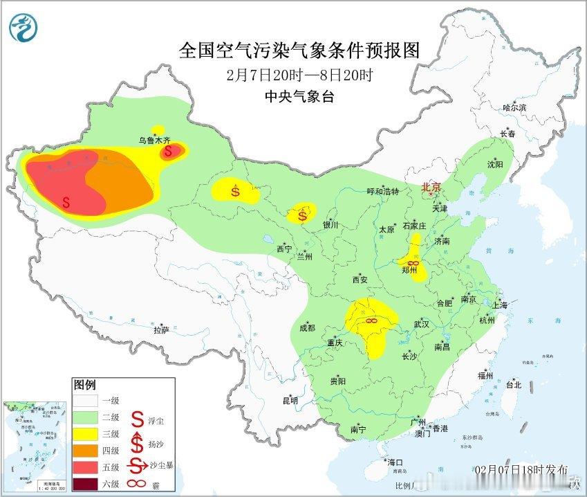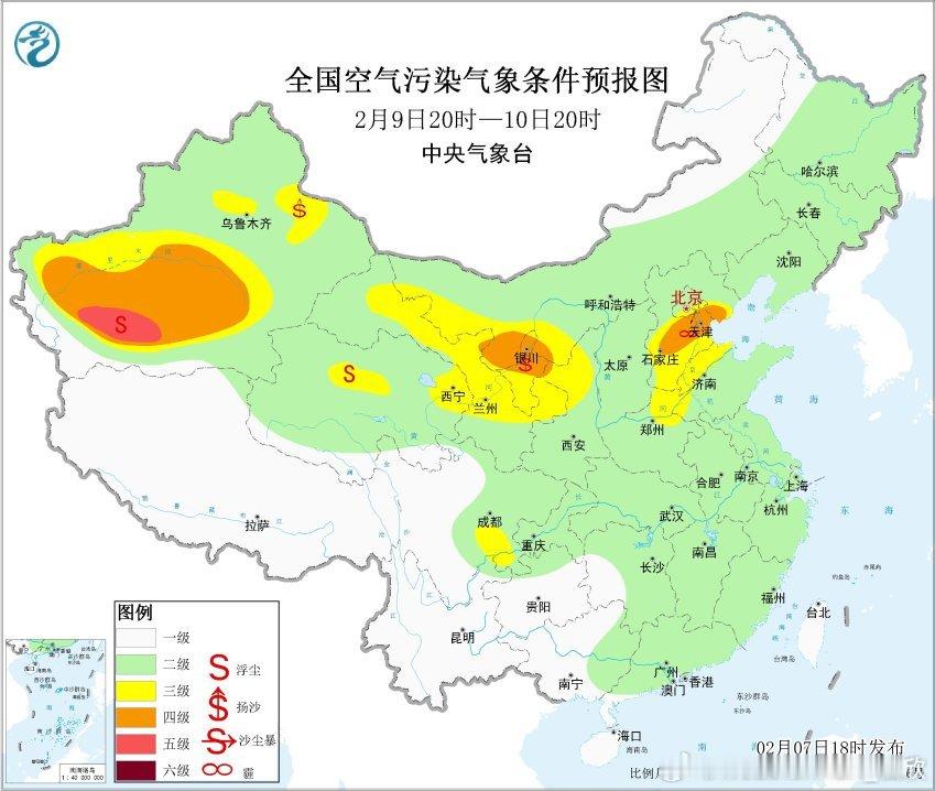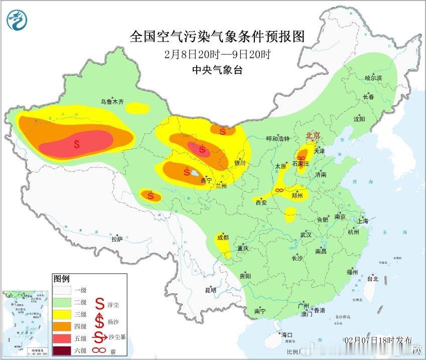 未来三天,新疆塔里木盆地浮尘还会持续。9日,内蒙古西部、甘肃中西部、青海等地有扬沙或浮尘天气。另外8日至9日,华北中南部、黄淮等地大气扩散条件一般,有轻度霾,部分地区有中度霾。10日受弱冷空气影响,华北中部、黄淮西部大气扩散条件有所改善。