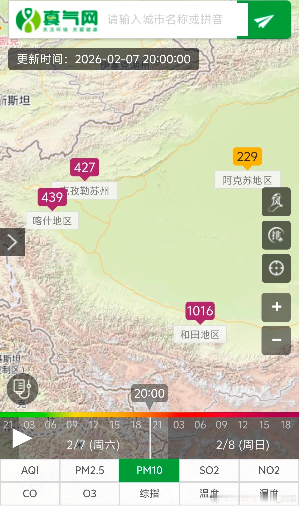 【雾 霾 沙尘】今晚到明天上午,新疆天山北麓、重庆、四川、贵州、湖北、安徽、福建局地可能有大雾。从今晚空气质量看,湖南西北部和湖北西部有霾导致的轻度污染。新疆塔里木盆地因为有沙尘影响导致的污染,和田处于爆表中。