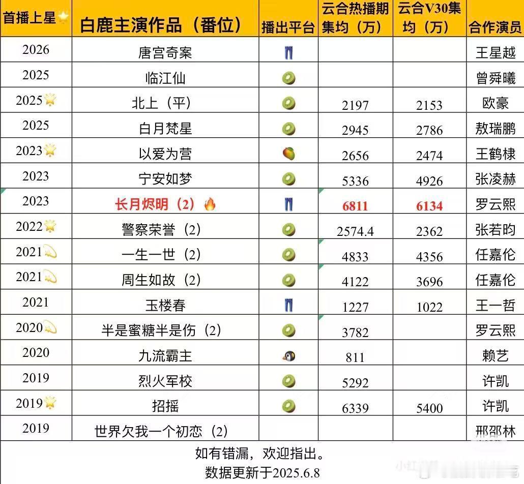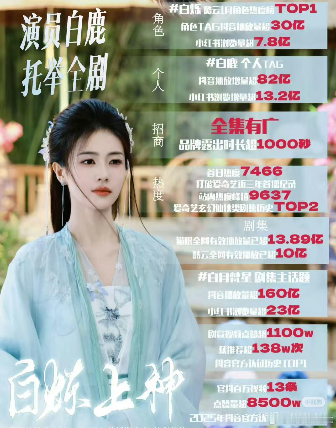 白鹿项目回报率白鹿的项目回报率确实蛮好的,感觉她的剧底盘都不错,属于那种很有扛剧能力的