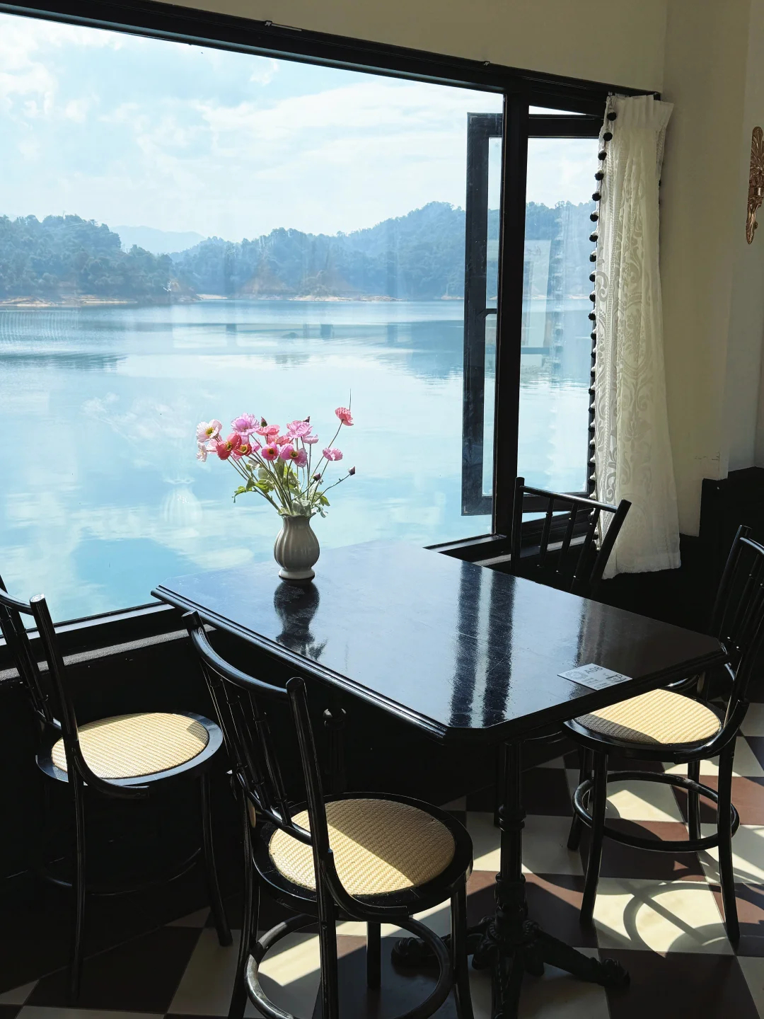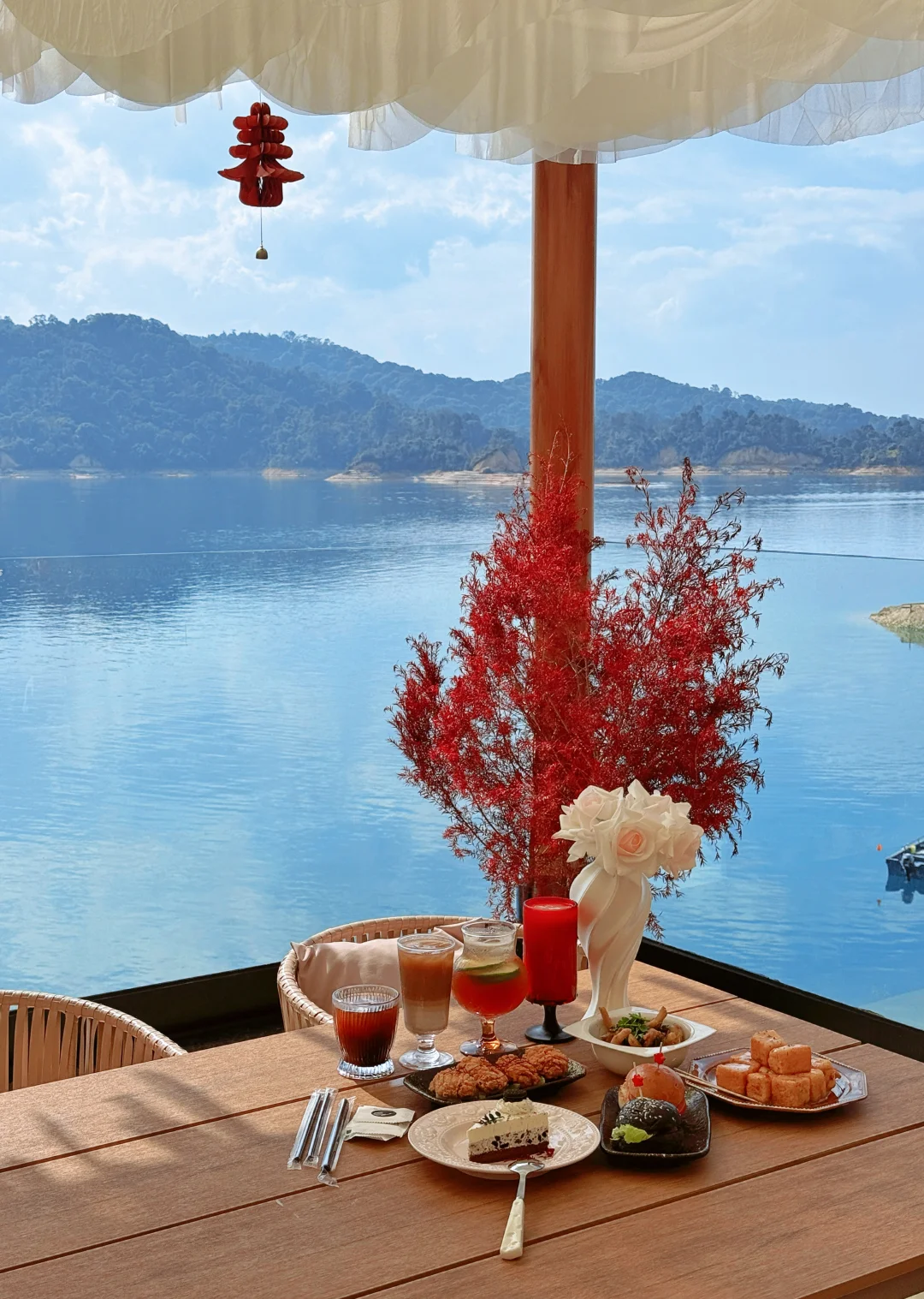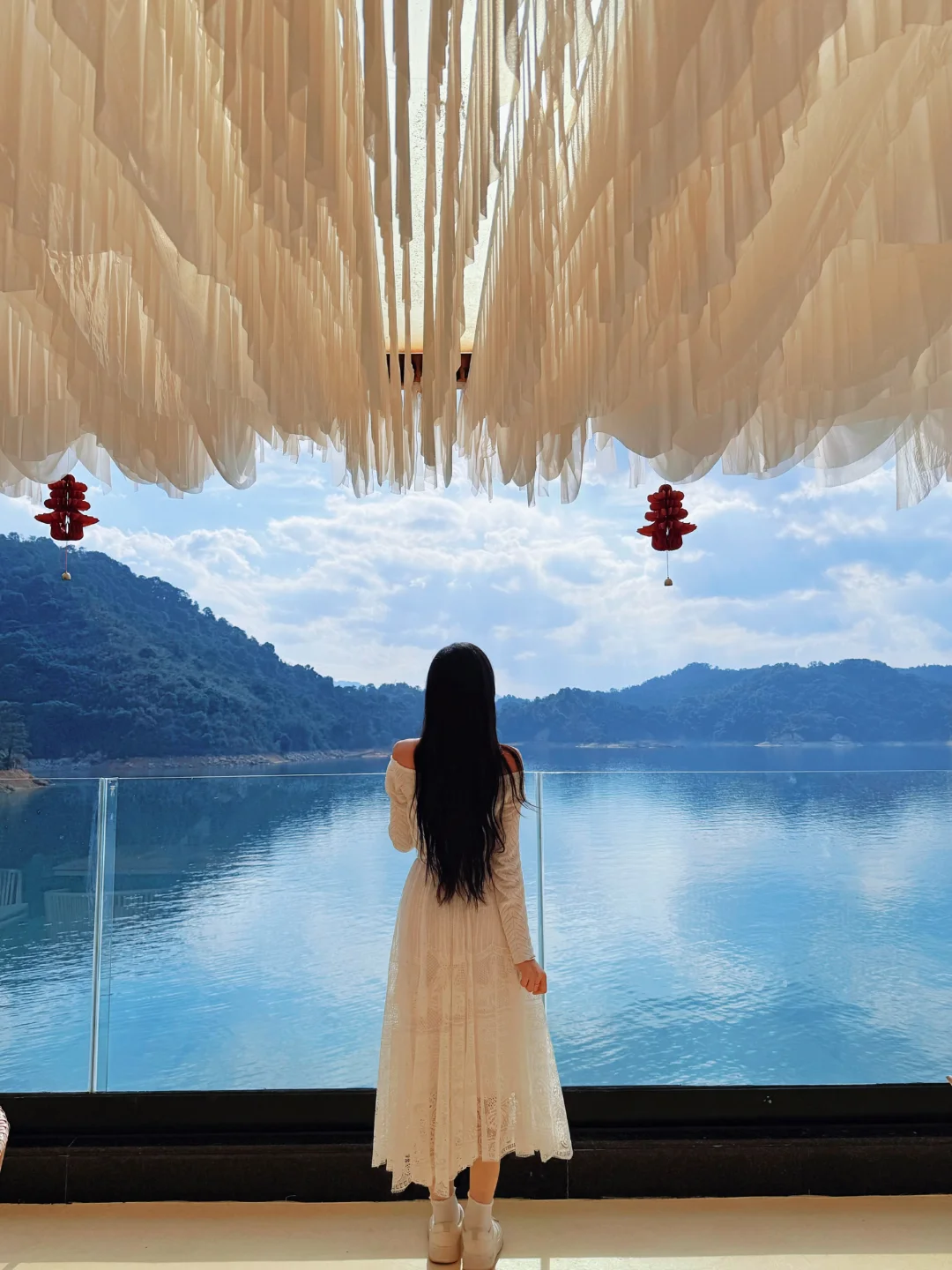 「河源的浪漫,万绿湖占一半」 坐在窗边,就能将万绿湖的万波碧倾尽收眼底✨ 波光粼粼的湖面真的太美了 这里每个角落都很好拍哦 现在也是换上了新春皮肤🧨 随手拍都好出片📷 在这里,点上一杯咖啡,或者蛋糕甜品🍰 跟爱人或者友人在这里尽情发呆,感受松弛 真的是一件很美好的事情 很推荐穿森系或度假风的衣服👗 真的很搭 营业到晚上6:30 幸运的话 还可以看到日落哦🌅