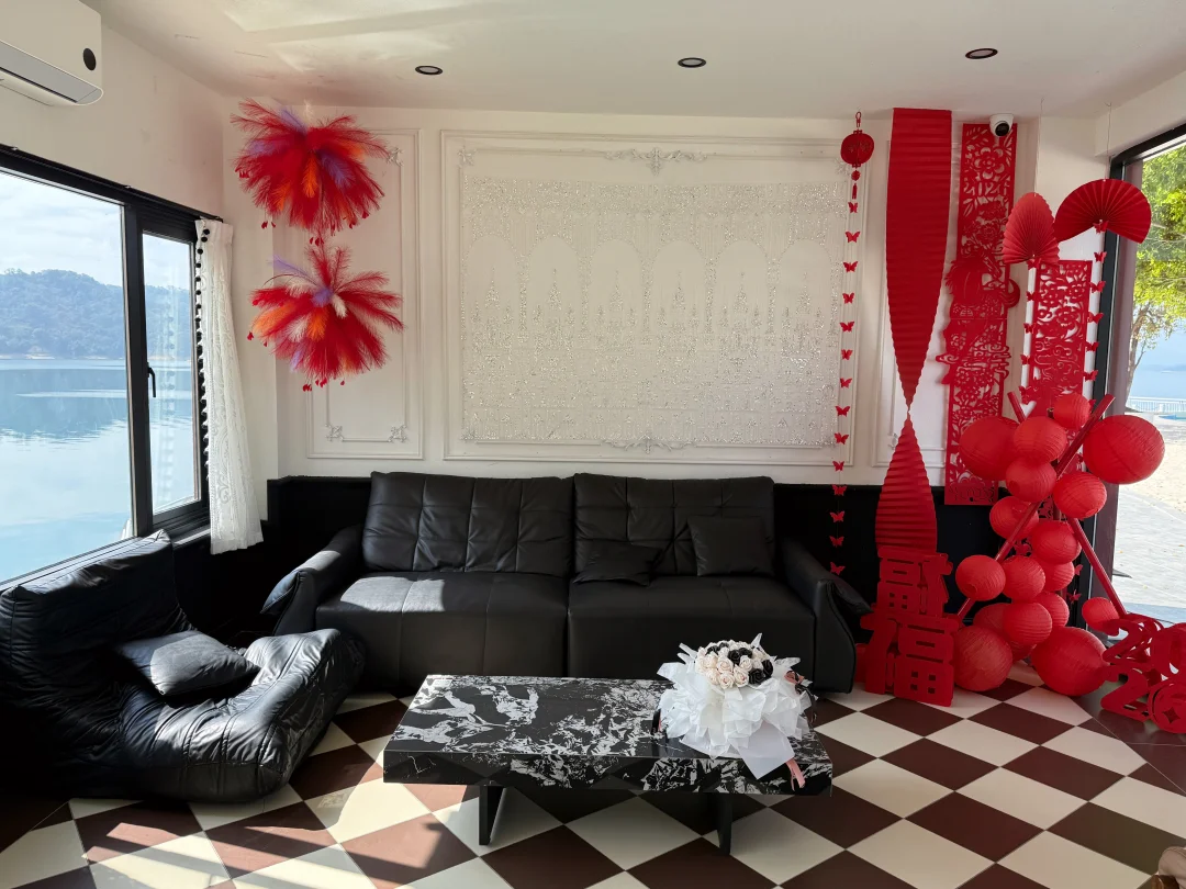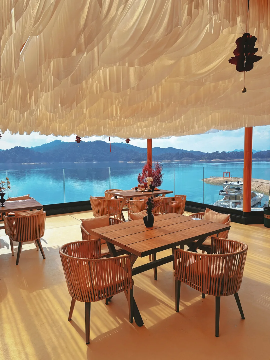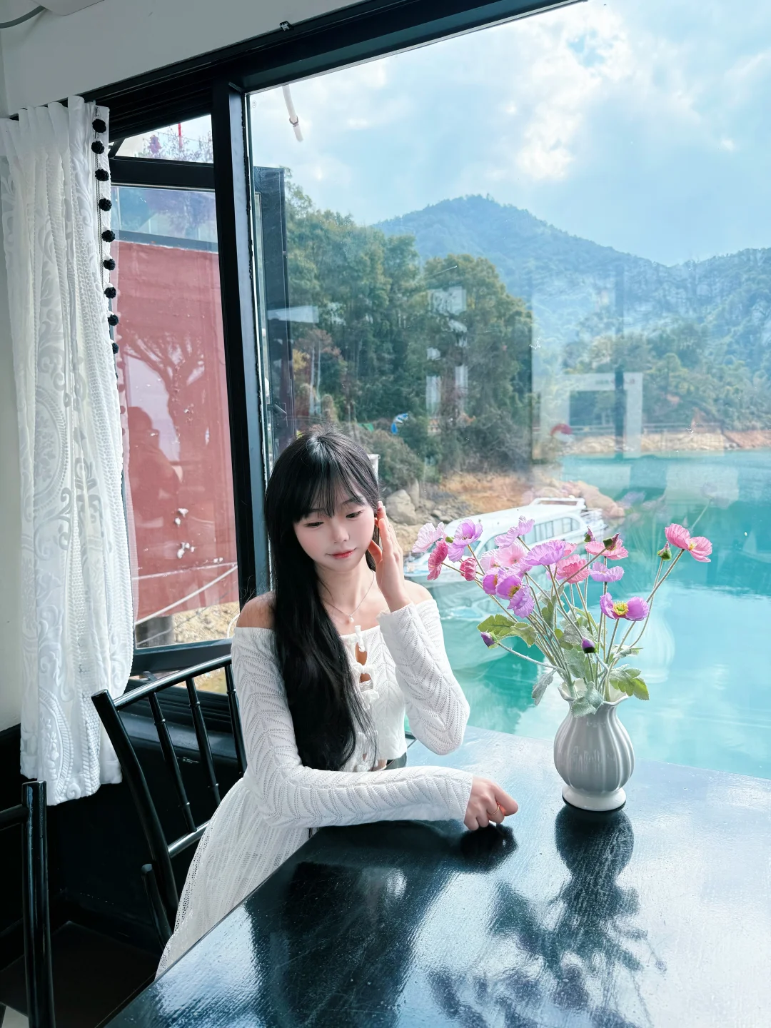 「河源的浪漫,万绿湖占一半」 坐在窗边,就能将万绿湖的万波碧倾尽收眼底✨ 波光粼粼的湖面真的太美了 这里每个角落都很好拍哦 现在也是换上了新春皮肤🧨 随手拍都好出片📷 在这里,点上一杯咖啡,或者蛋糕甜品🍰 跟爱人或者友人在这里尽情发呆,感受松弛 真的是一件很美好的事情 很推荐穿森系或度假风的衣服👗 真的很搭 营业到晚上6:30 幸运的话 还可以看到日落哦🌅