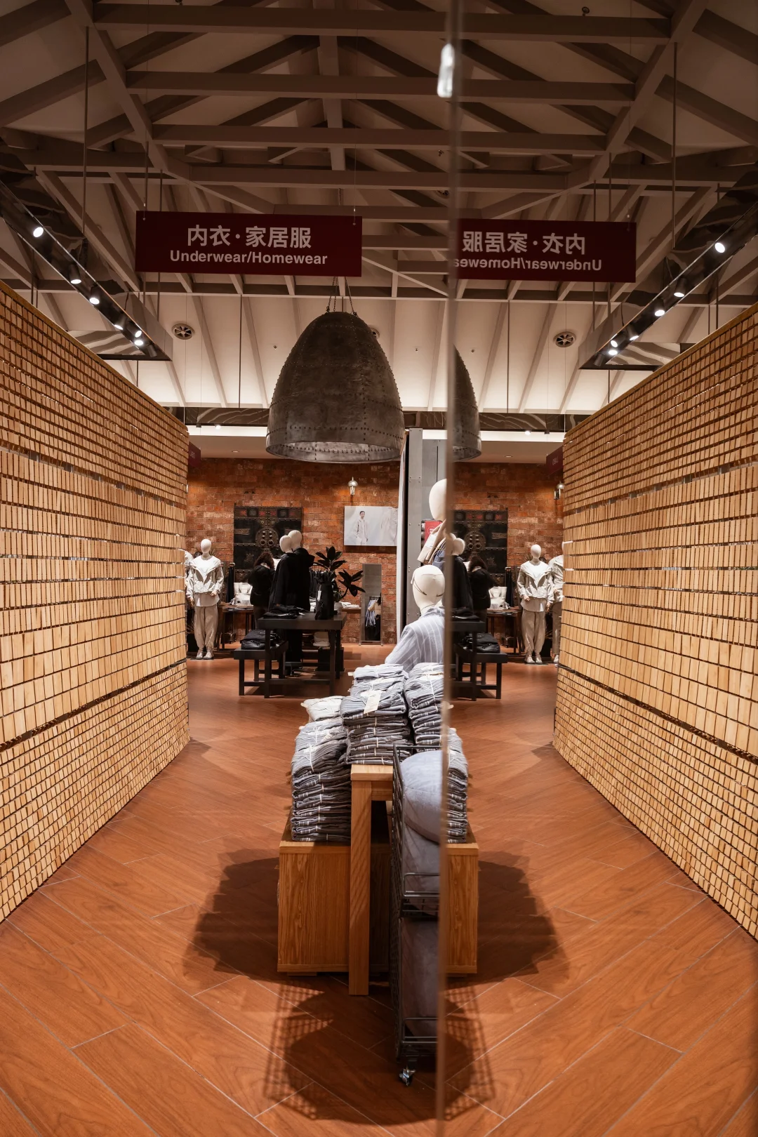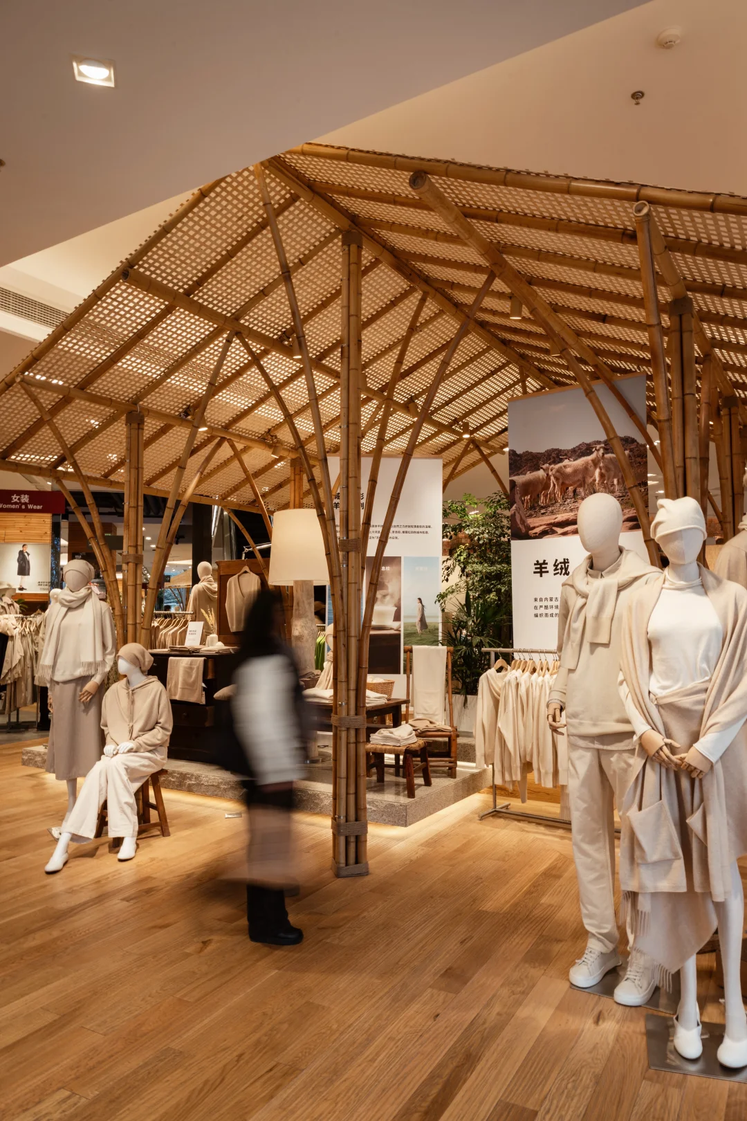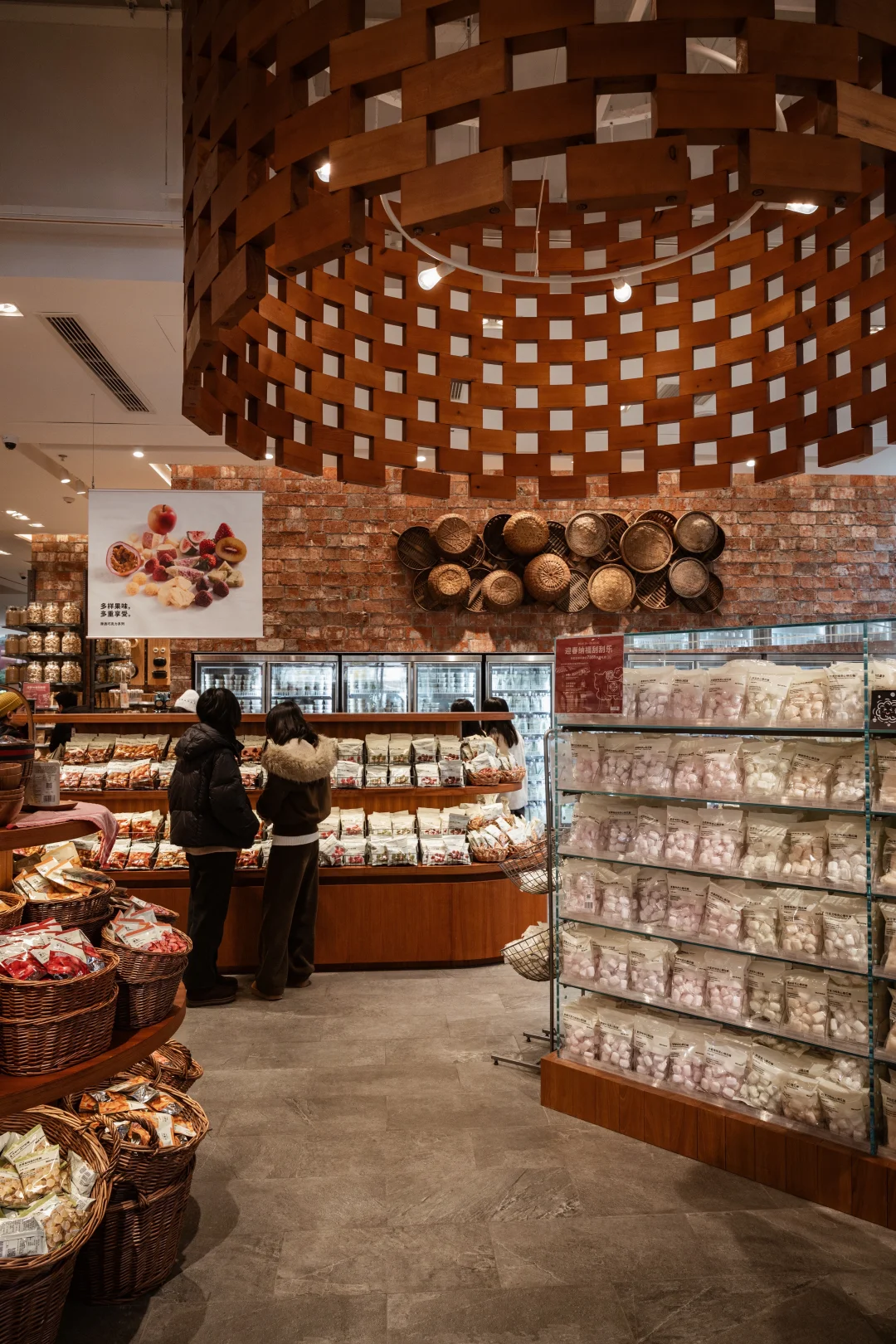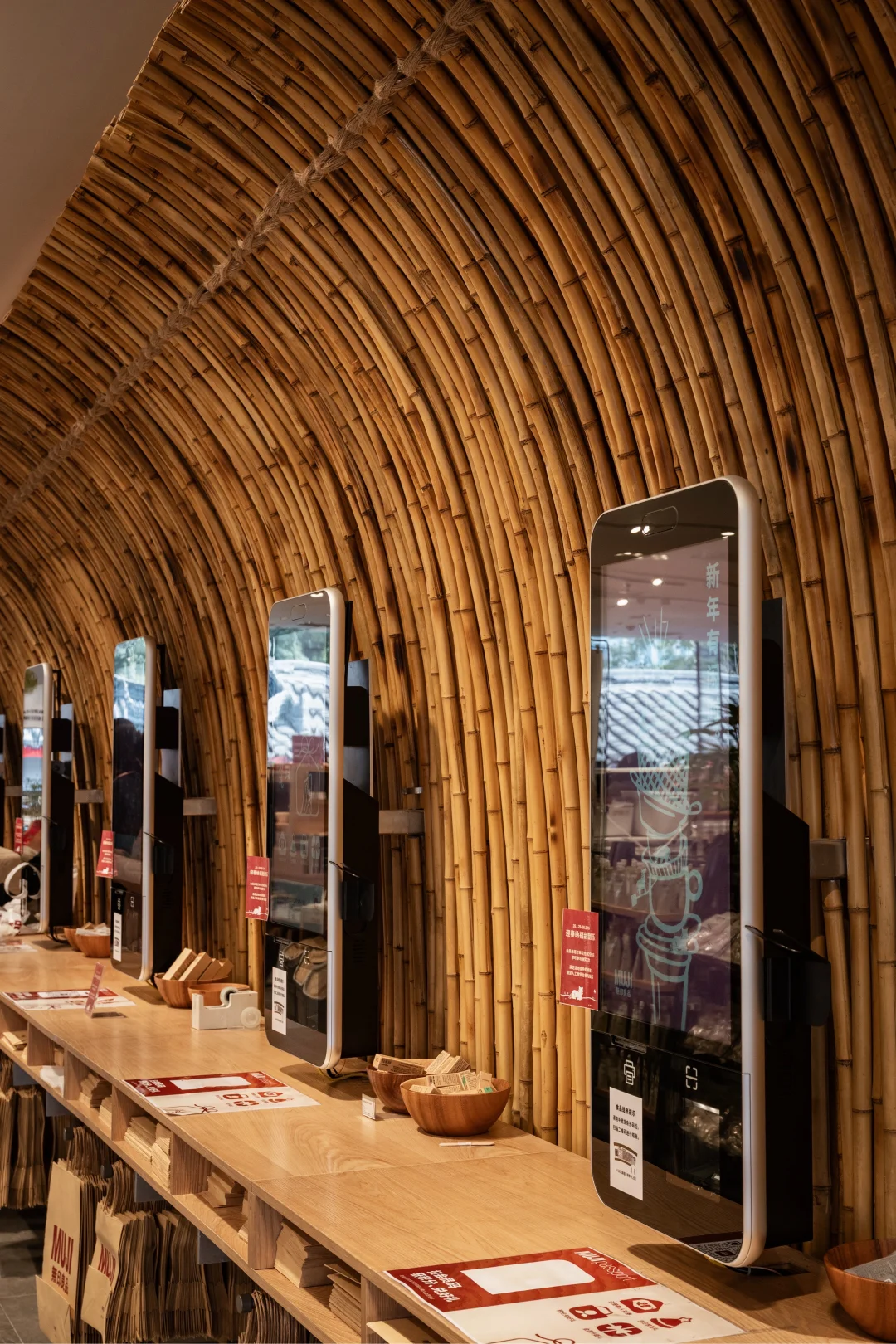顺着空间向下,负一层墙面以麻将席为灵感,唤起熟悉而亲切的触感记忆;步入二层,收银区的竹艺装置宛如一片静谧竹林,勾勒出“伴竹而居”的日常意境。这些细节不曾张扬,却温柔串联起共同的生活记忆,置身其中,只觉亲切与真实自然而然地流淌。