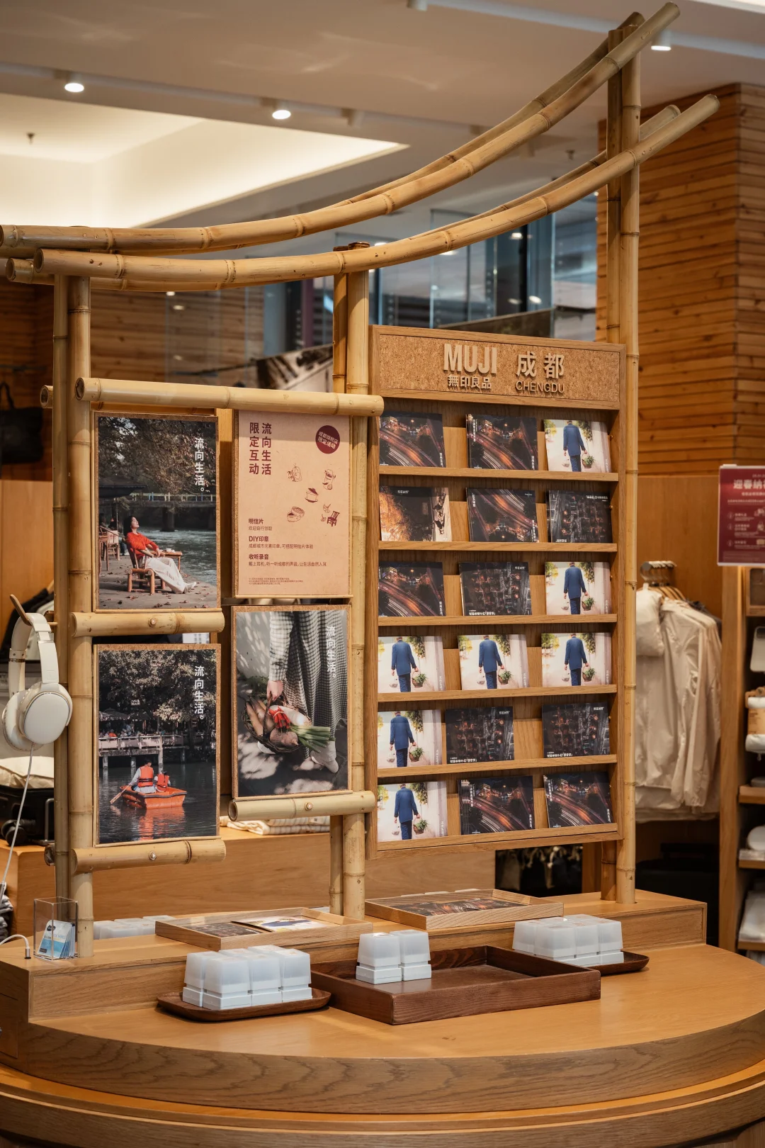 行至三楼,ATELIER MUJI 正在举办的「竹间日常」展览,从竹的形态、工艺、应用与传承四个维度,完整呈现竹子的一生,亦诠释着四川人“伴竹而居”的生活哲学。