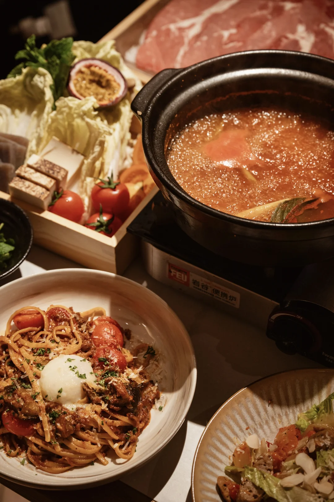 -三楼的MUJI Diner现在有成都限定料理,点了几个菜,和牛麻婆茄子意大利面,中西融合,味道不错。澳洲安格斯牛肉酸汤锅,木姜子的味道很浓郁,几个新鲜的树番茄下锅,酸酸辣辣特别开胃。