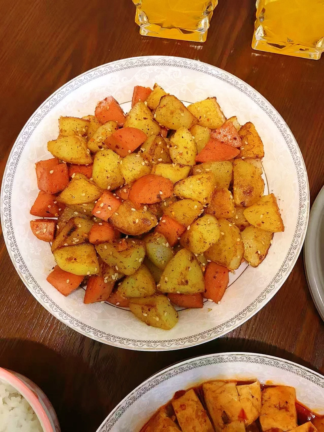 二人食晚餐,在家做好吃又下饭的家常快手菜! 1⃣️黄瓜肉片汤 2️⃣红烧豆腐 3️⃣孜然火腿土豆丁