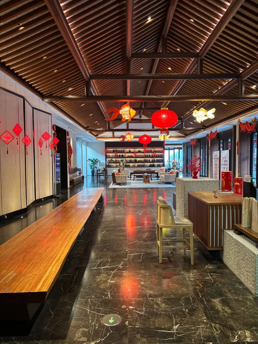 设计美学天花板:巧妙融合了徽派建筑的白墙黛瓦与苏式园林的亭台水榭,一步一景,仿佛住进一座精致的山水园林博物馆。