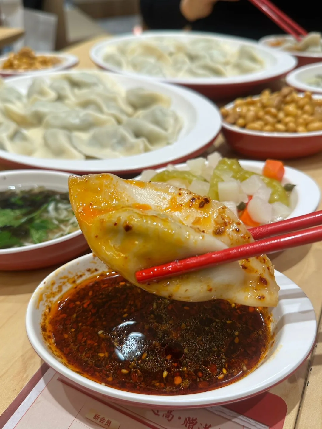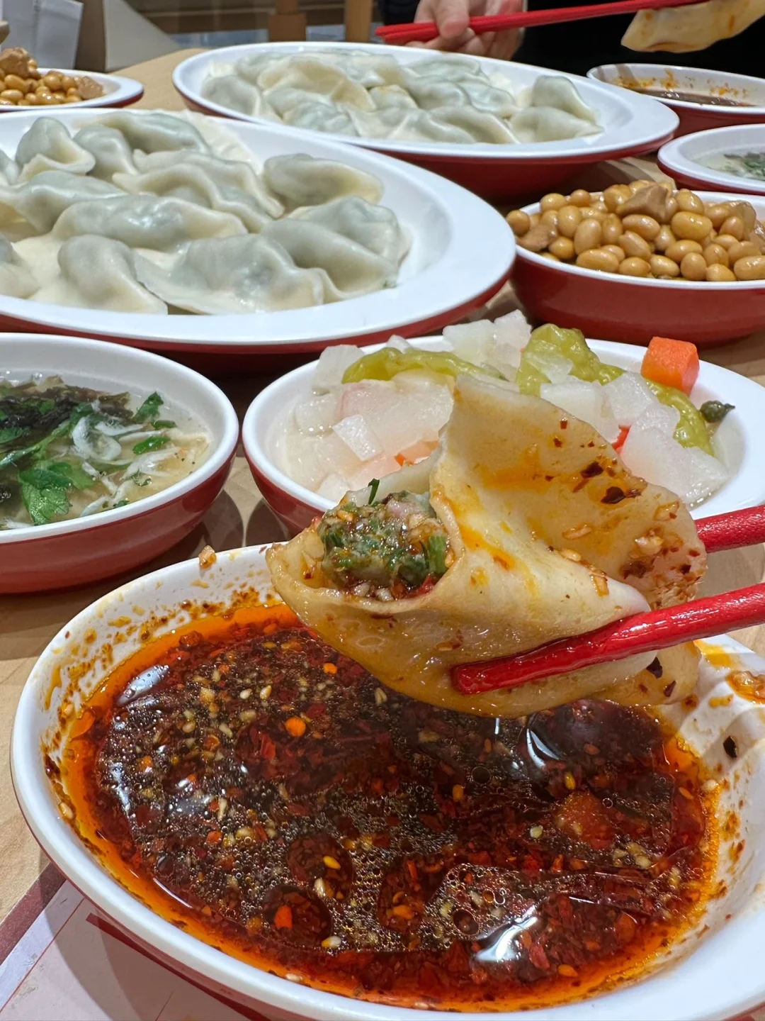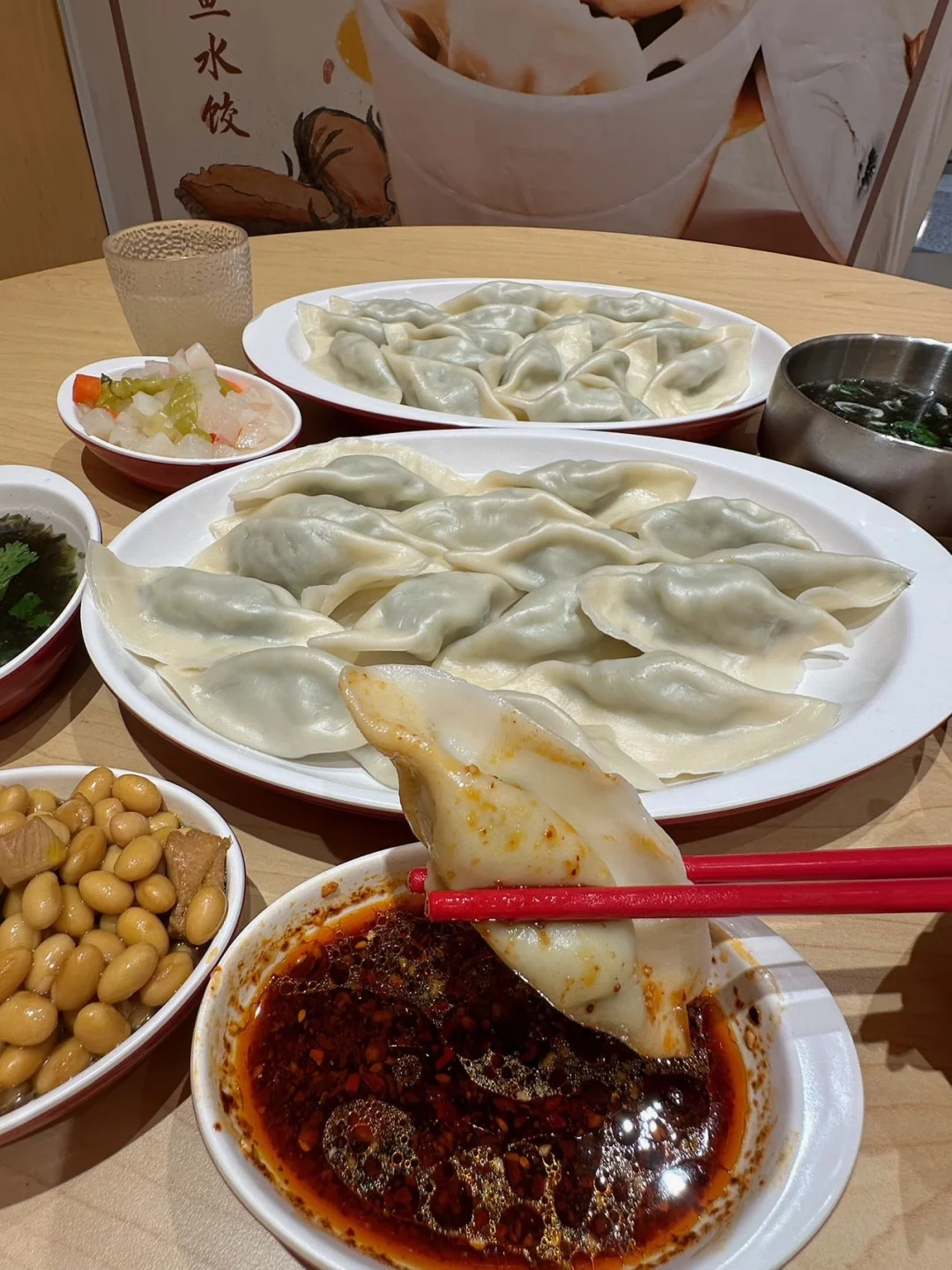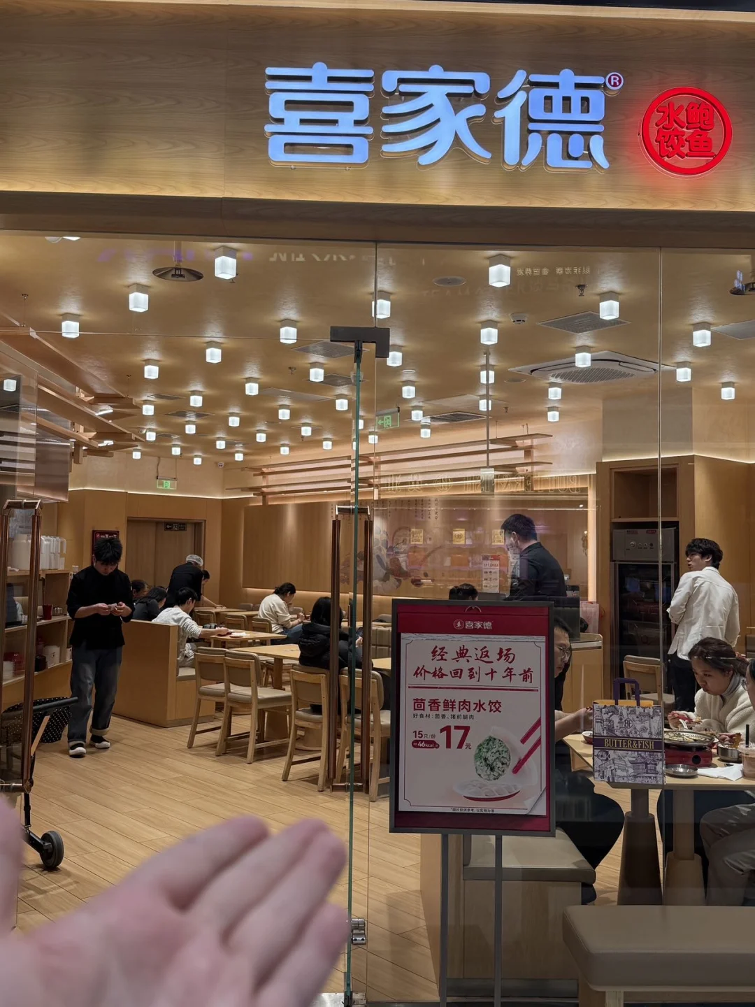喜家德,家喻户晓的饺子门店! 17块!打工人轻轻松松✌🏻 GET一份载满幸福的午餐! 价格回到10年前! · 茴香水饺🥟!经典返场! 一份饺子15颗🥟,皮薄馅大,滑溜溜! 茴香+猪肉的经典口味,一口幸福! 17块💰!水饺+汤+小菜+蘸料… 舒舒服服吃一餐,简直美滋滋~~ · 超羡慕万象城的打工人! 约个上班搭子一起来吃水饺~~ ·