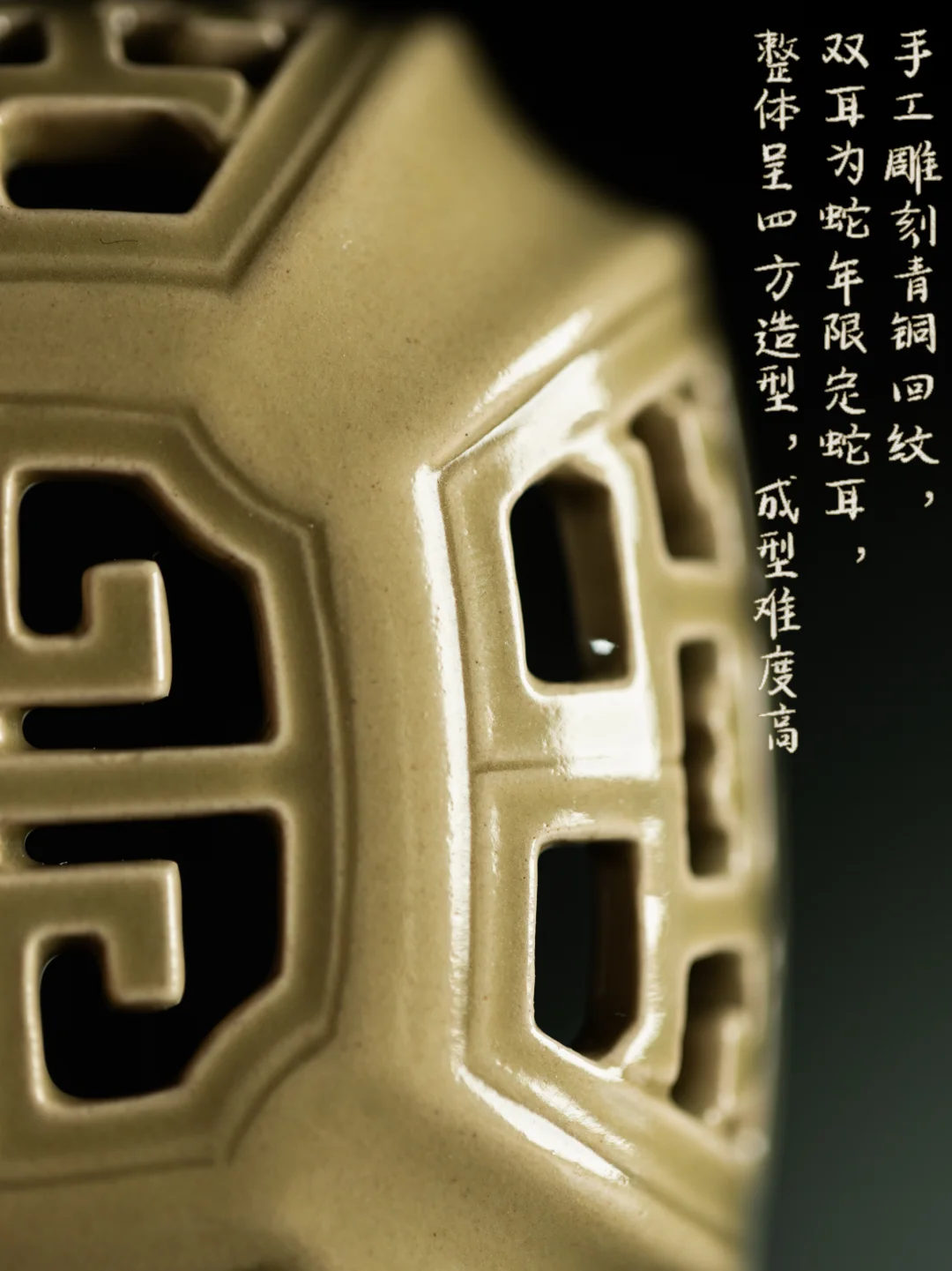 器型可溯至商周之“罍”。四方敦实,雕刻古朴的回纹。它像基业的磐石,稳稳镇在一方天地间,烟火起处,是定静从容。