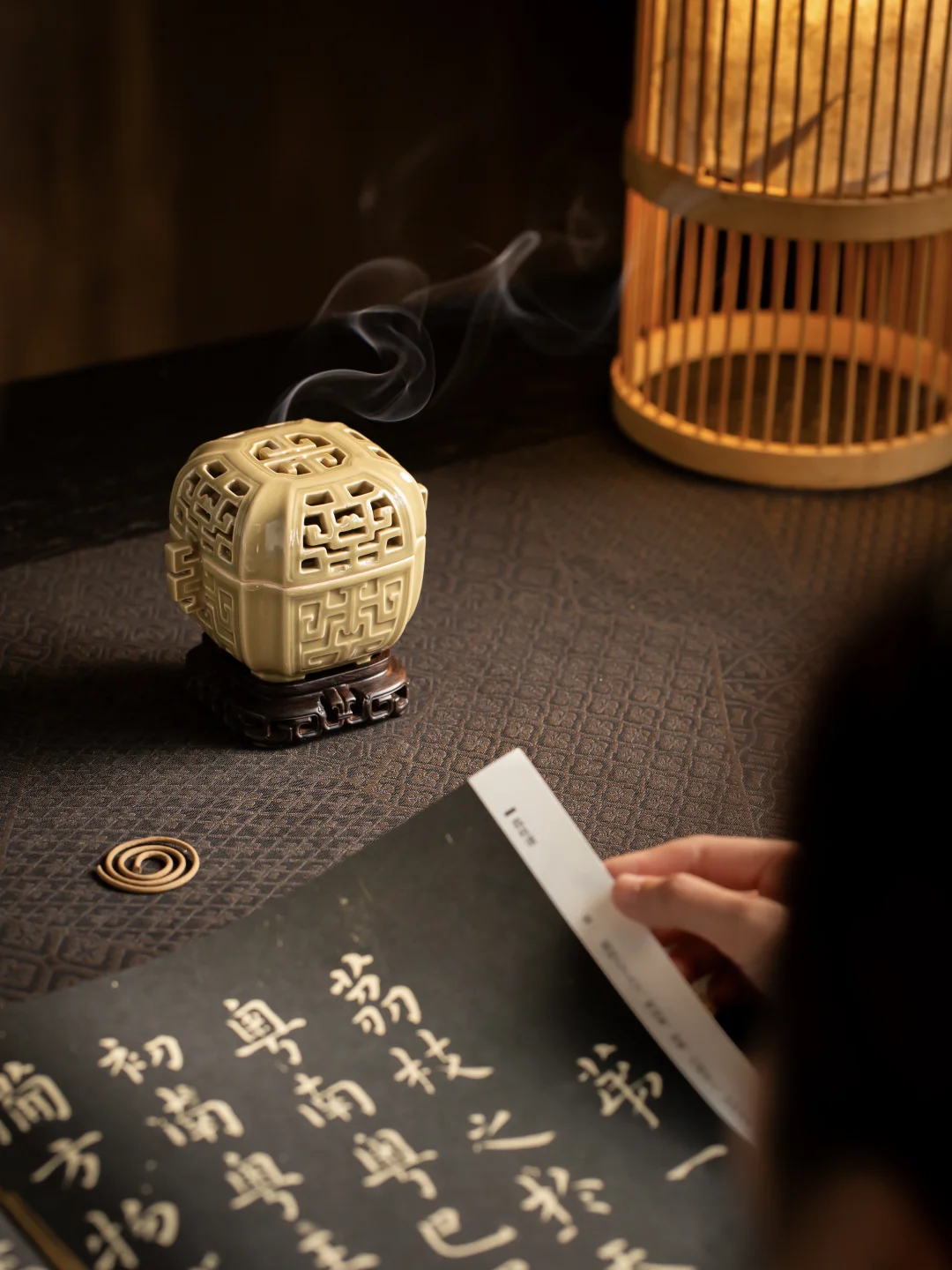 这组以“方”为骨的香器,便承着这样的寓意。它们静置于书房或办公室,不言不语,却自有一份沉稳的场域,与引领者的胸襟互为映照。