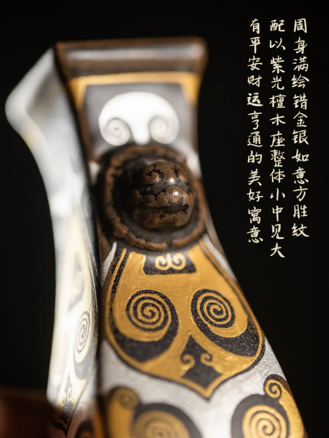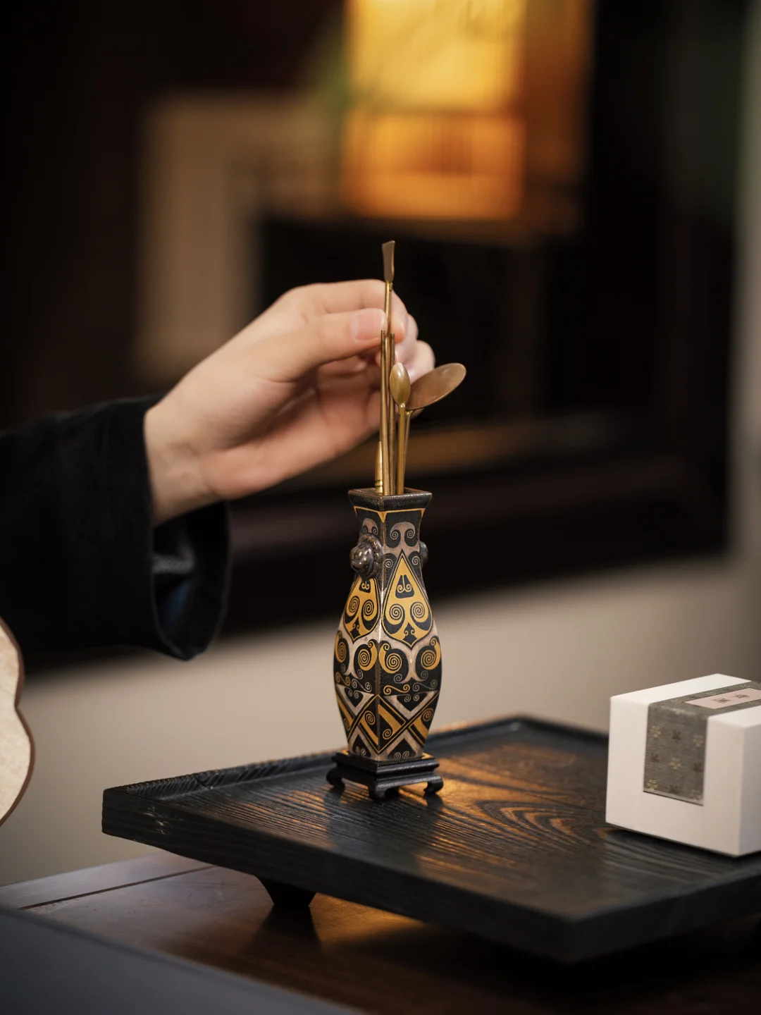 原型为明代铜瓶,通体错金银如意纹,流光蕴彩。它可收纳香具,亦可独作清供,寓意平安亨通,是宏大叙事中一处精巧的注脚。