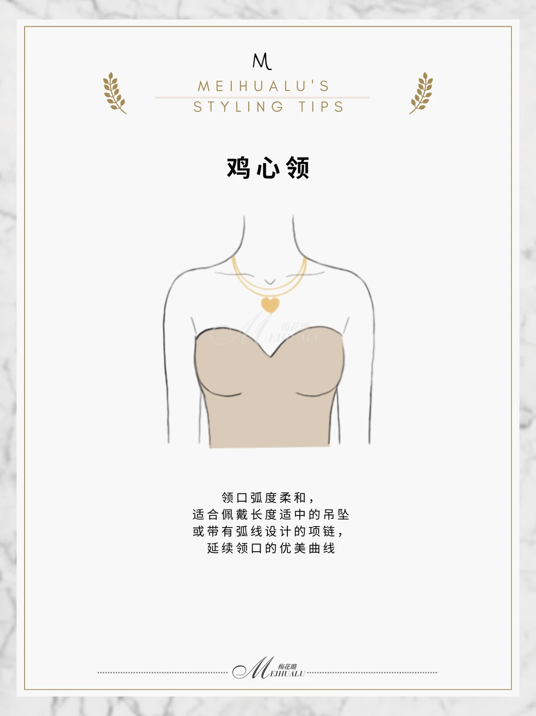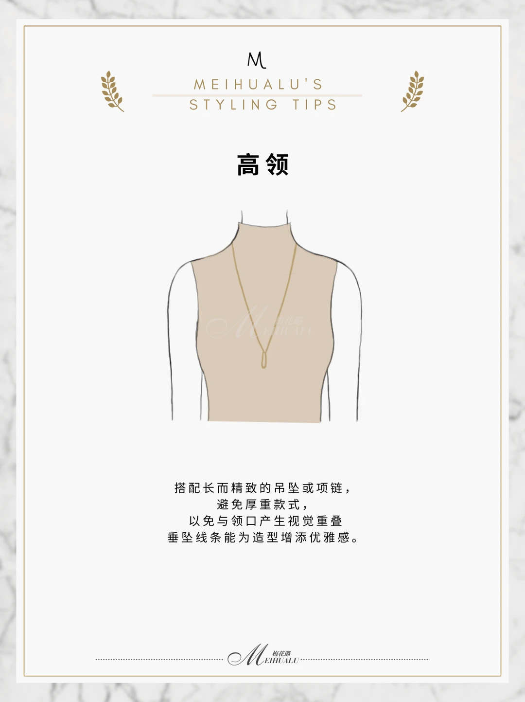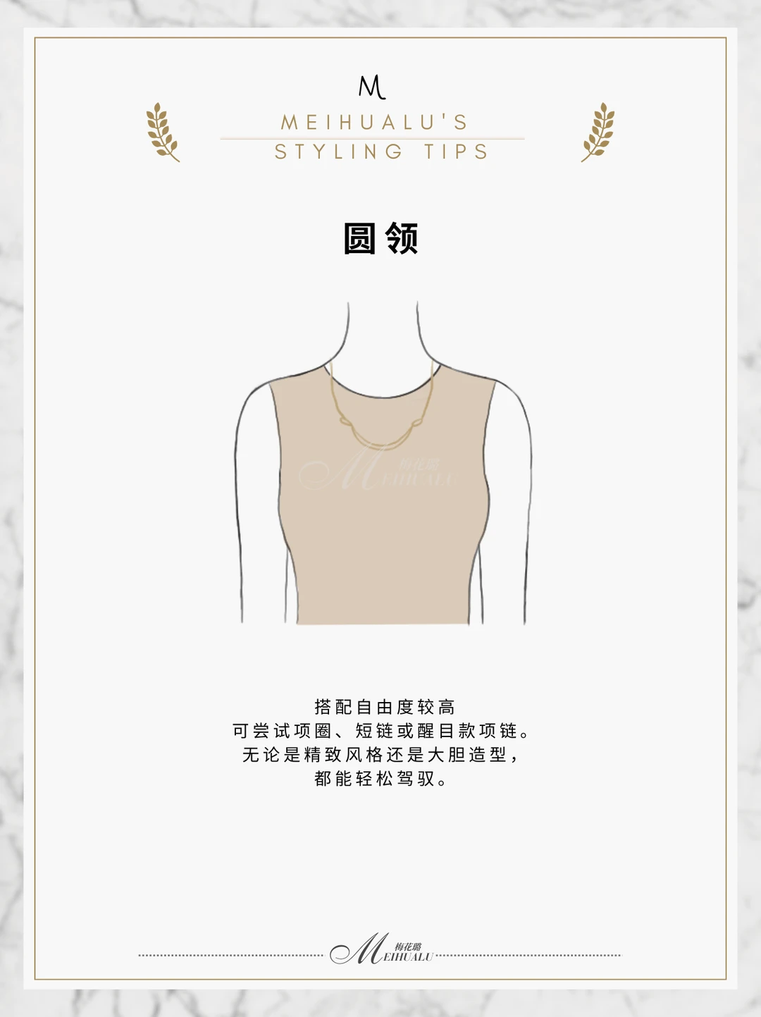 适合佩戴长度适中的吊坠或带有弧线设计的项链,