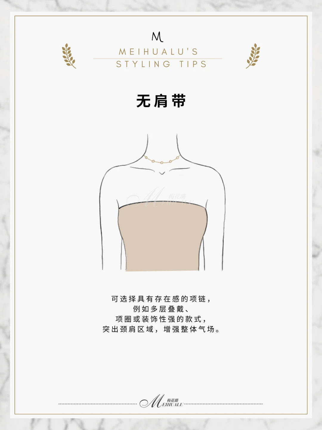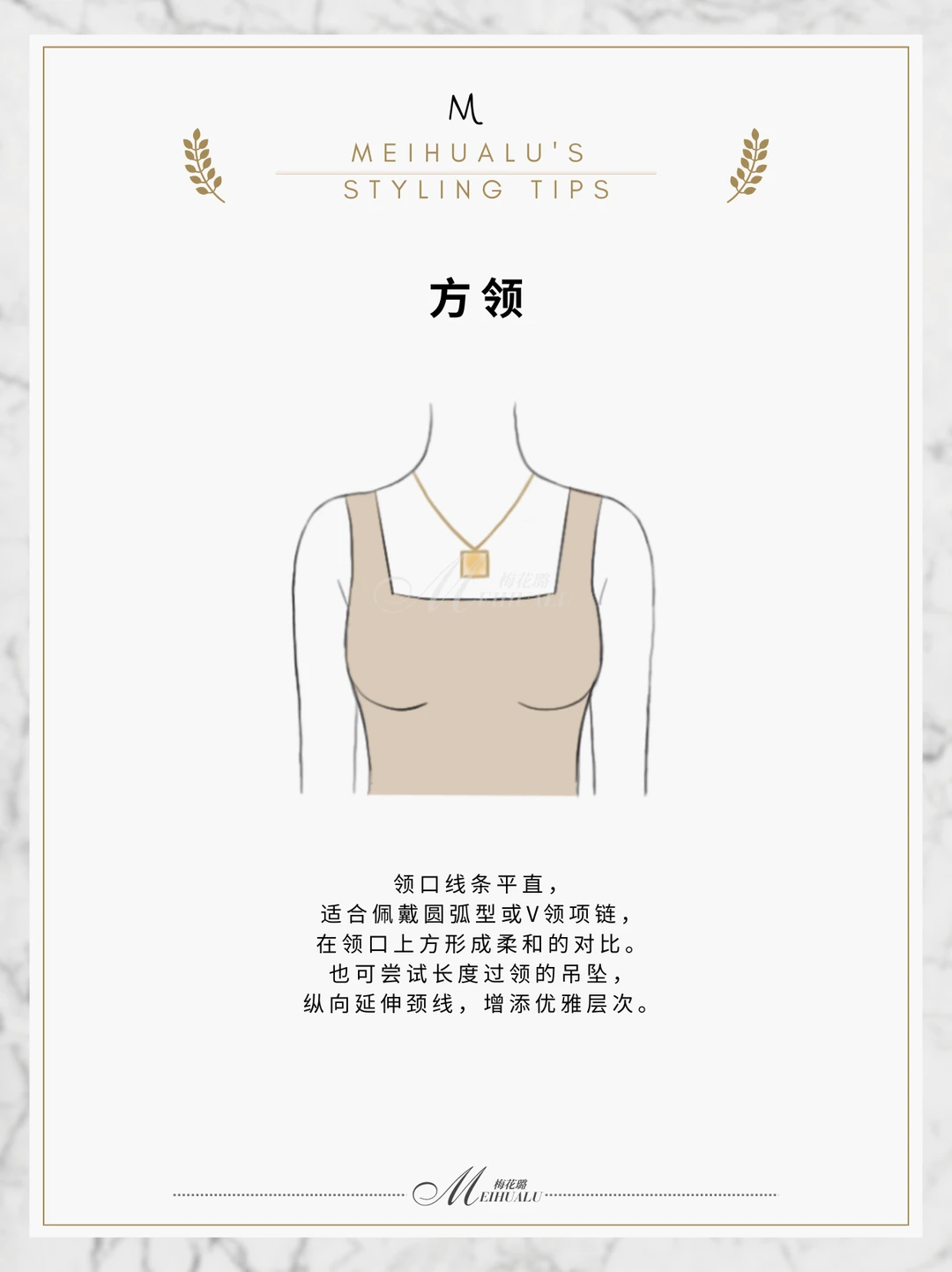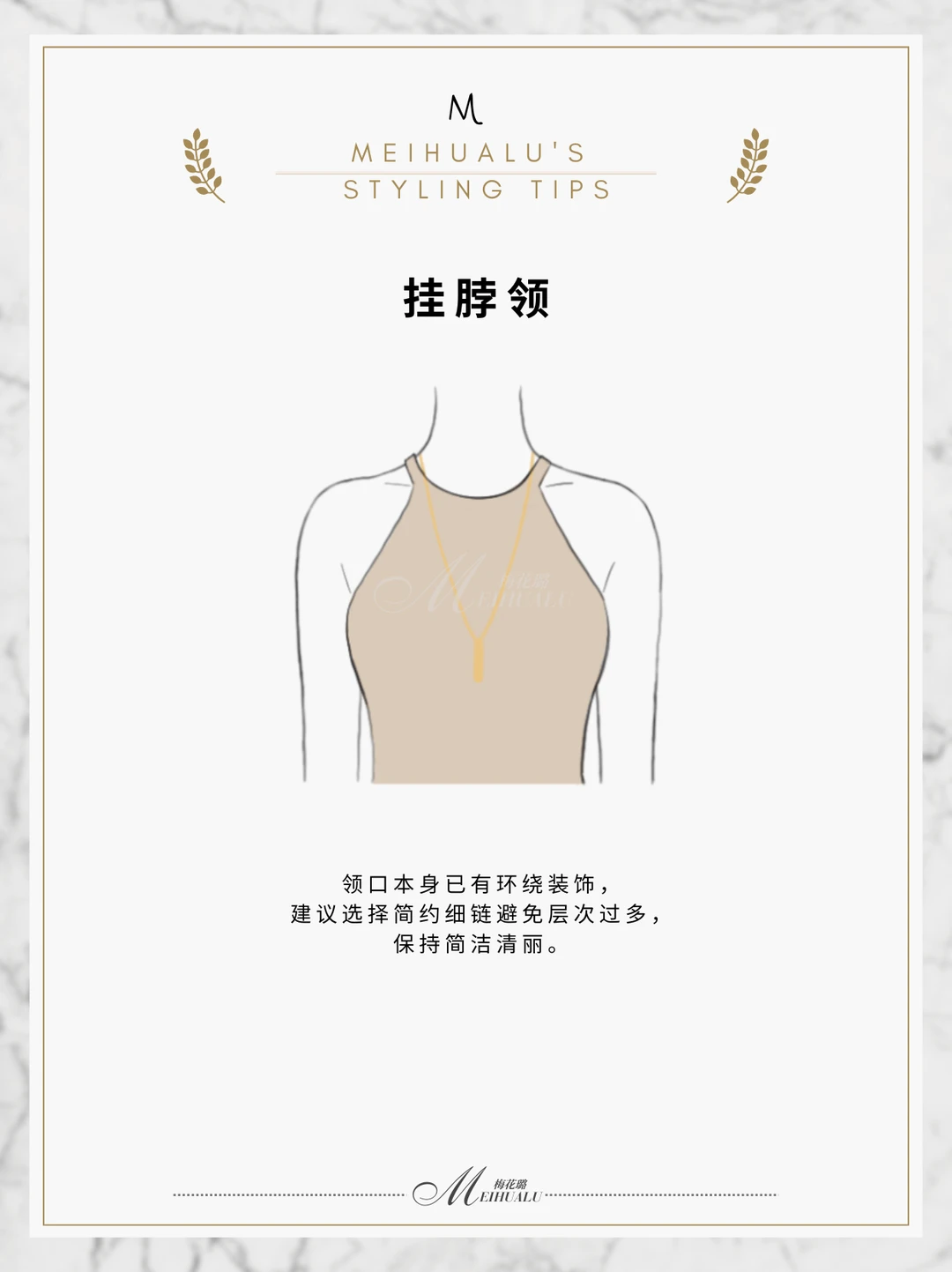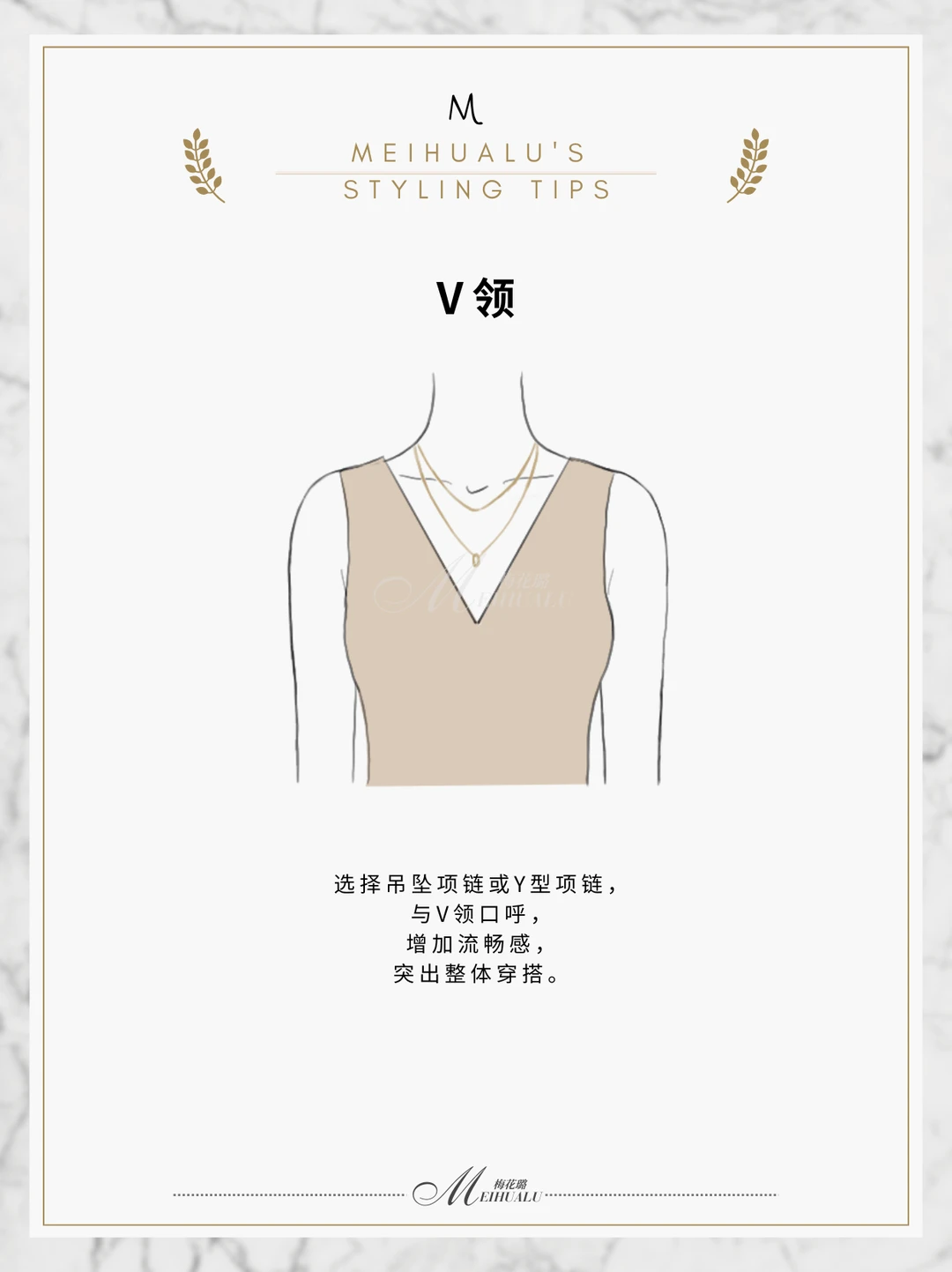 适合佩戴长度适中的吊坠或带有弧线设计的项链,