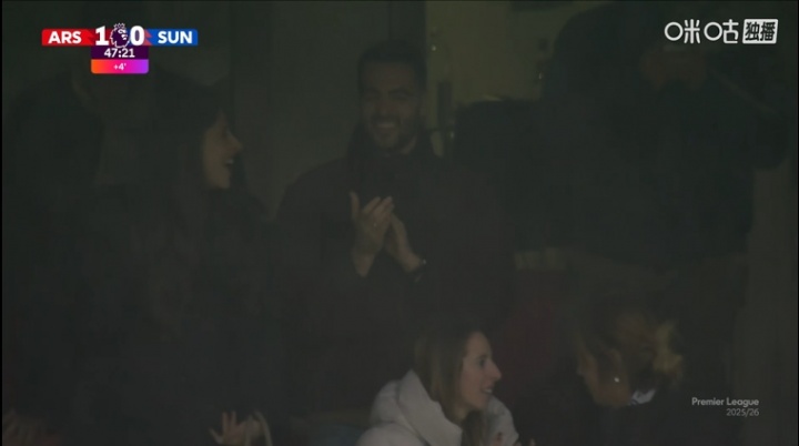 直播吧02月07日讯英超第25轮,阿森纳vs桑德兰。比赛上半场苏维门迪破门后,做出梅里诺的标志性庆祝动作,看台上因伤缺战的梅里诺看到后笑开了花。