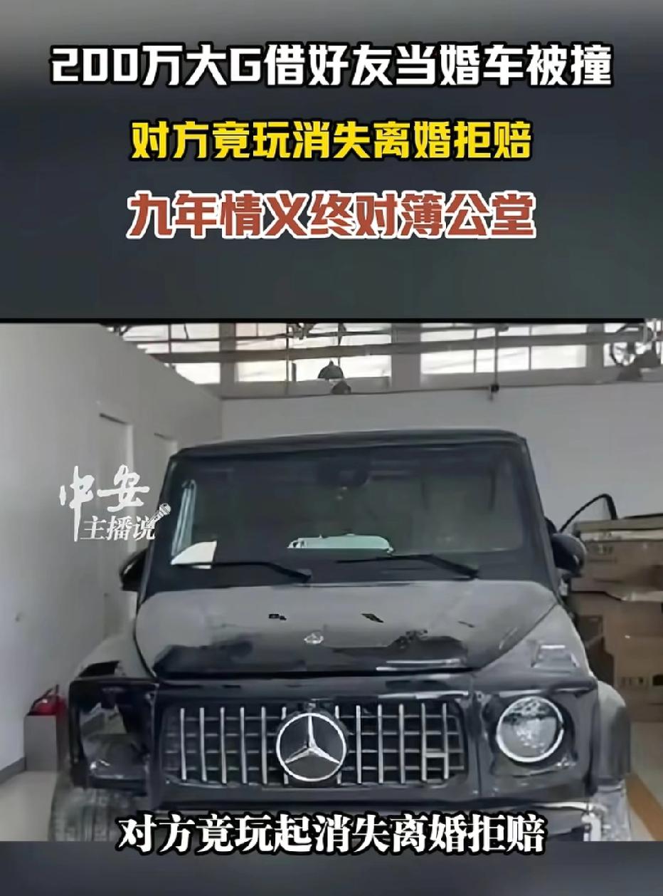 河南,男子借200万大奔给朋友当婚车,不料,朋友开车却连撞4车,还负全部责任,大奔定损41万,男子顾念朋友情分,决定拆车件维修,省一半钱,但车修好了,朋友却不结账取车,却表示刚离婚,手里没有钱,男子一气之下将朋友告上法庭。 朱先生怎么也没想到,自己念及9年友情,把200万刚买半年的奔驰大G借给朋友孙某当婚车,最后竟要和好友对簿公堂。 去年10月,恰逢朋友孙某办婚礼,对方开口想借朱先生的大G当婚车。 朱先生想着两人九年的交情,他没多想便满口答应。 可谁也没料到,这场喜庆的婚礼,会因一场意外急转直下。 婚礼当天天公不作美,下起了雨,孙某亲自开着借来的大G接亲,新娘也坐在车上。 据新娘回忆,当时孙某开车的速度快得离谱,同行跟车的朋友把车开到100码,都追不上他的车。 就在有人喊着慢点开时,孙某一脚油门下去,车子直接失控,狠狠撞向了路边停放的四辆汽车。 剧烈的撞击后,喜庆的氛围瞬间消散,现场一片狼藉。 被撞的四辆车不同程度受损,而朱先生那辆崭新的大G,更是伤得严重,好好的婚车,转眼成了事故车。 交警赶到现场勘查后,出具了交通事故认定书,明确孙某因操作不当导致车辆失控,对此次事故负全部责任。 后续定损结果出来,朱先生的大G单维修费用就高达41万余元,这还不算被撞四辆车的赔偿。 看着这个数字,朱先生心里不是不心疼,但念及和孙某九年的朋友情分,他终究狠不下心让对方全额承担。 于是他主动提出,不用原厂配件维修,改用拆车件,这样能为孙某省下近20万,朱先生想着,自己退一步,朋友总能念着这份情,好好承担剩下的责任。 可这份体谅和退让,并没有换来孙某的担当。 大G按约定修好后,朱先生通知孙某来结账取车,可对方却开始百般推脱,从各种借口拖延,到最后干脆坦言,自己刚和妻子离婚,手里没有钱,拿不出维修费。 朱先生起初还愿意相信朋友的难处,可后来偶然发现,孙某名下原本有一辆坦克500,却在事故发生后,悄悄过户到了其前妻名下。 这下,朱先生彻底寒了心,他不得不怀疑,对方所谓的离婚没钱,不过是借着离婚的名义转移财产,刻意逃避赔偿责任。 从最初的爽快借车,到主动退让省维修费,朱先生一步一步为这份友情妥协,可换来的却是朋友的刻意躲避和算计。 多次沟通协商无果后,朱先生再也无法顾及所谓的九年情谊,一纸诉状将孙某告上了法庭,讨要自己应得的赔偿。 面对起诉,孙某在采访中回应,自己并非刻意逃避责任,还提及他和朱先生此前有生意合作,愿意用店内的物品折抵部分赔偿,剩下的款项后续再慢慢补齐,也表示会按照法院的最终判决履行义务。 但截至目前,孙某始终没有实际支付过任何一笔维修费用,这场因借车而起的纠纷,终究还是走到了对簿公堂的地步。 此事曝光后,引发网友热议,大家纷纷为朱先生的遭遇抱不平。 网友表示,9年的友情,连一句靠谱的交代都没有,朱先生已经仁至义尽了,选拆车件省一半钱,结果换来这样的结果,换谁都寒心! 网友认为,借车真的是大忌,再好的朋友也不行,一旦出了事,钱和情大概率都没了,这位孙先生不仅毁了婚礼,还毁了九年的情谊。 以后不管谁借车,都要果断拒绝,别因为抹不开面子,最后给自己惹一身麻烦,法律虽然能兜底,但维权的过程太心累。 如果实在抹不开面子需要借车,也一定要做好3点:一是确认借车人具备合法驾驶资格,无酒驾、毒驾、疲劳驾驶等情况。 二是检查车辆无安全故障,确保车辆符合上路标准。 三是留存好借车相关证据,如聊天记录、驾驶证照片、借车协议等,明确双方的权利和义务,一旦出了事,才能更好地维护自己的合法权益。 借车出事故,谁开车谁担责,车主只有在有过错的情况下,才需要承担相应责任。