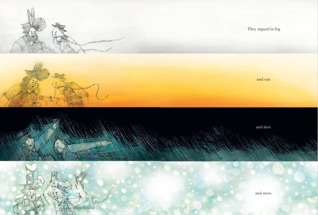 科琳娜・吕肯延续其标志性的艺术风格,以充满想象力的画面和简洁诙谐的文字,将人性中的固执与盲从、集体情绪的失控与荒诞展现得淋漓尽致。通过这场令人捧腹又引人深思的 “争吵狂欢”,读者不仅能感受童话的奇妙趣味,更能从中窥见现实中矛盾的缩影。