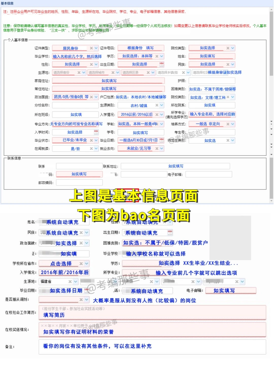 (8)注意:保存前请确认填写基本信息的真实性,毕业学校、学历、所学专业、毕业日期等一经保存个人将无法修改!如需变更以上信息请联系毕业学校老师核实后修改。