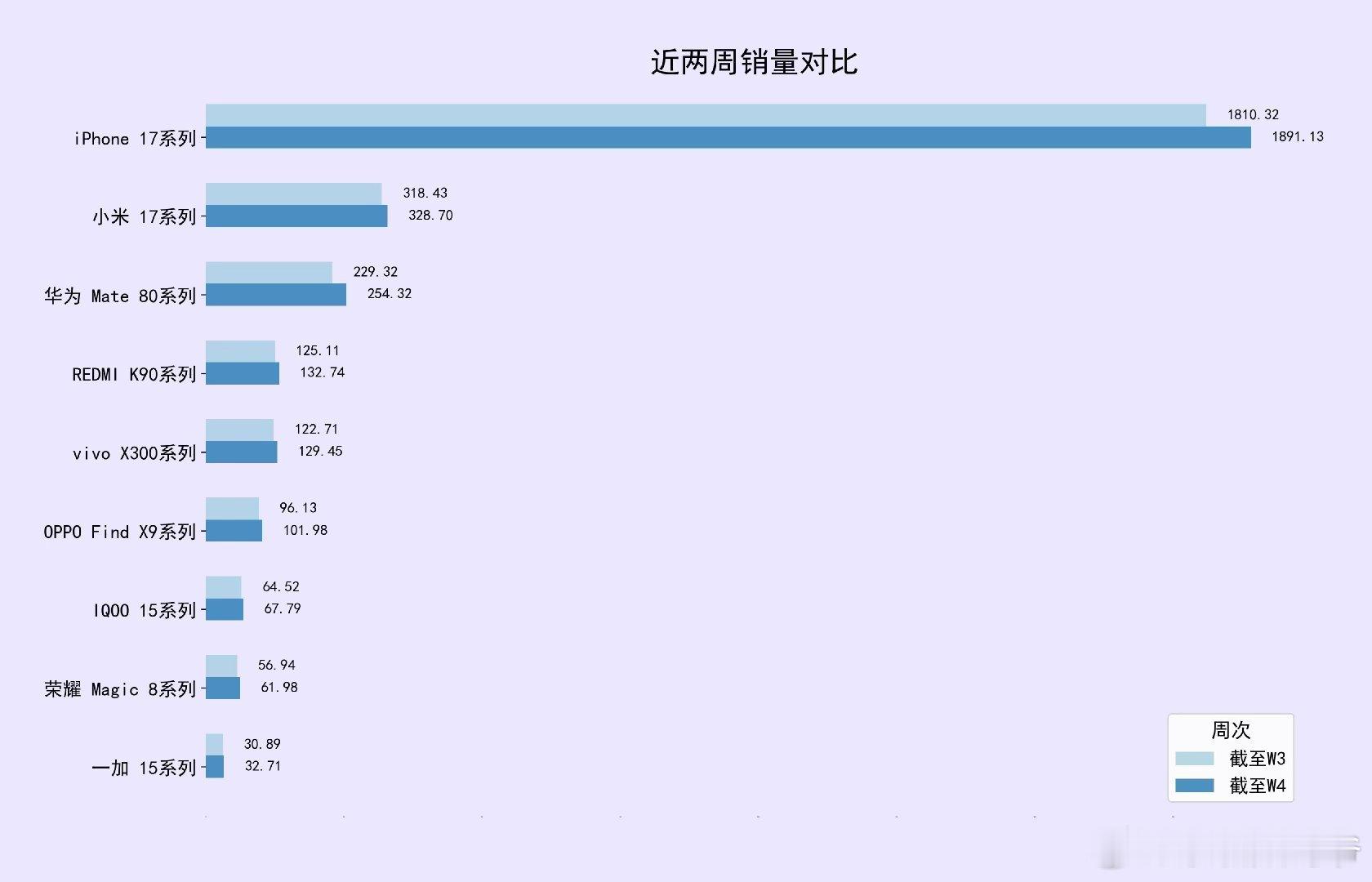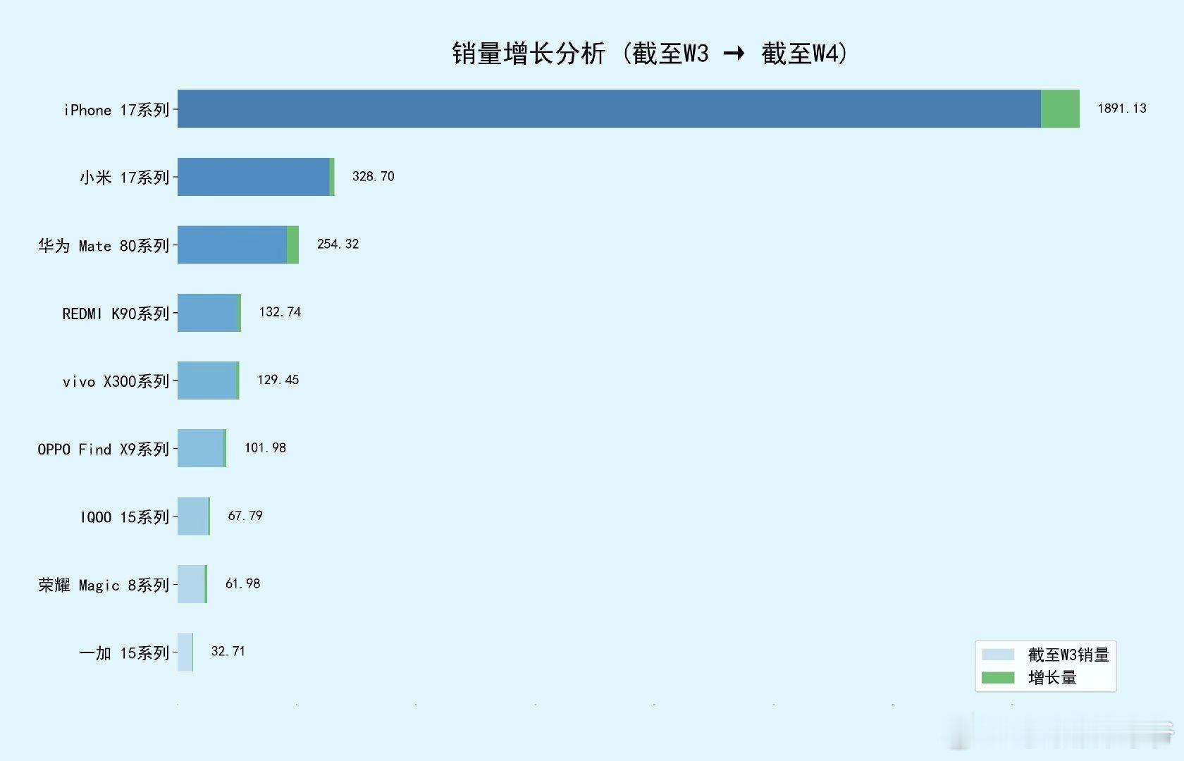 近两周国内旗舰手机销量增长情况!iPhone17系列遥遥领先;华为Mate80系