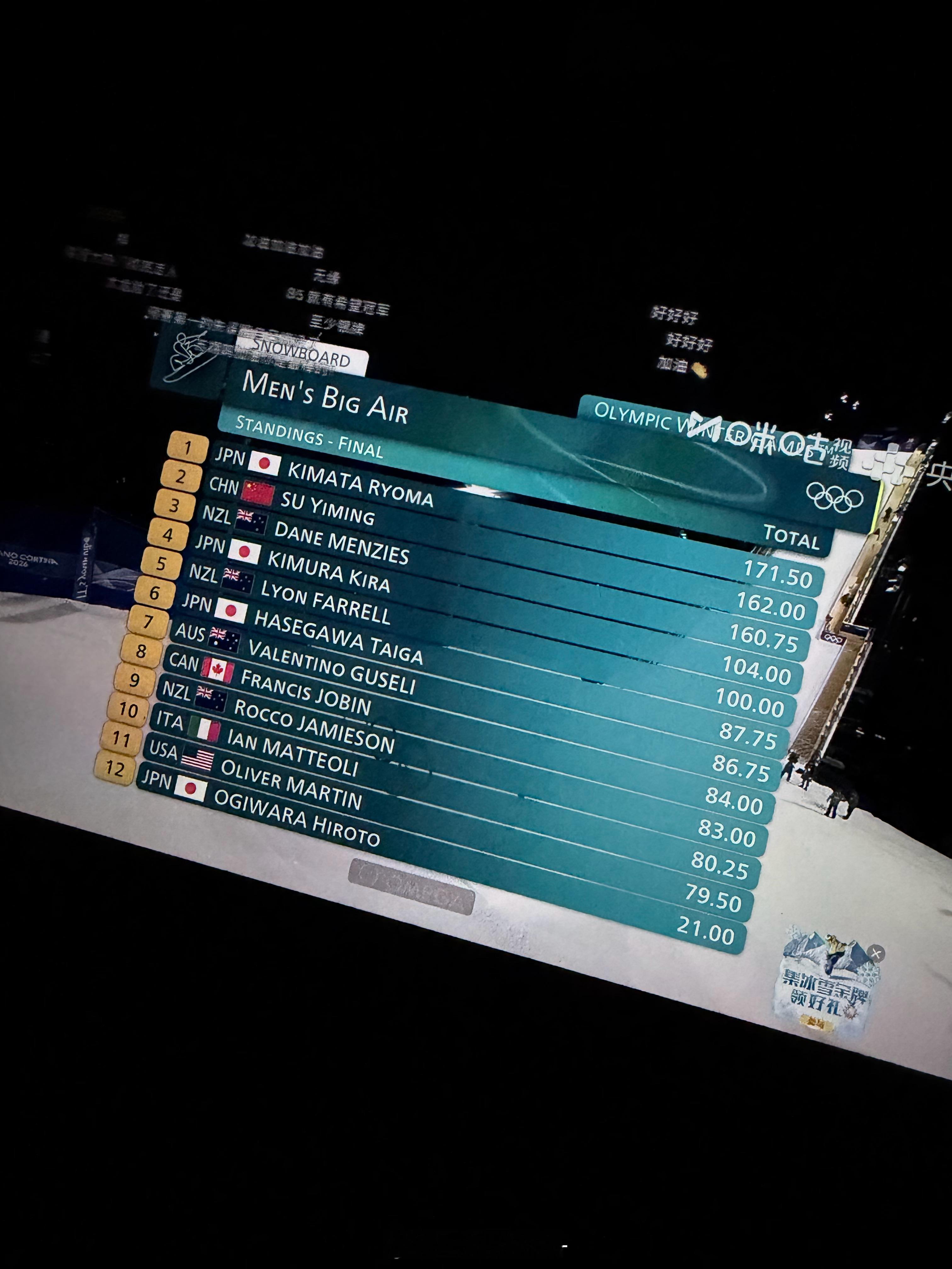 今年的比赛真精彩啊,基本上来就1980已经第二轮比赛了,还没看出来谁能赢 第二轮比赛之后苏翊鸣来到第二名
