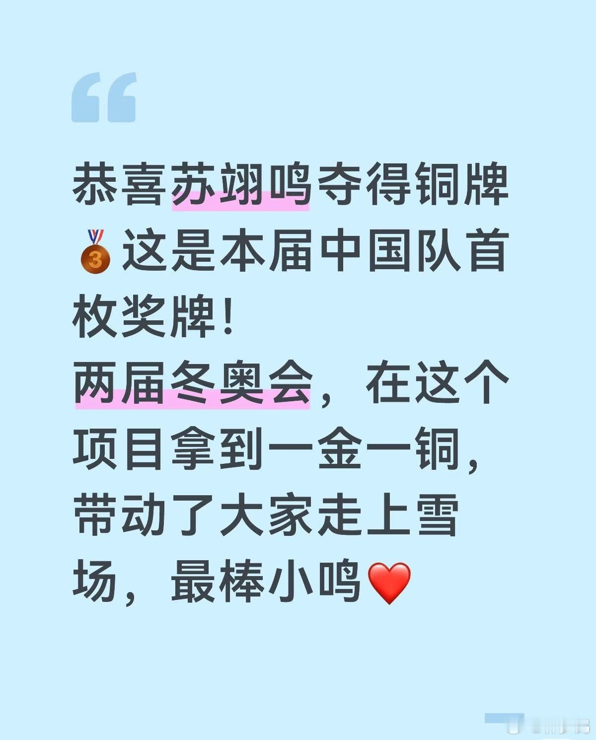 恭喜苏翊鸣夺得铜牌🥉这是本届中国队首枚奖牌!两届冬奥会,在这个项目拿到一金一铜,带动了大家走上雪场,最棒小鸣❤️苏翊鸣大跳台铜牌苏翊鸣