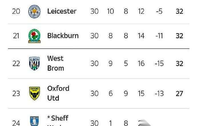 前英超冠军莱斯特城,直接被一纸罚单,砍掉了6分。 现在,他们在英冠积分榜上排到了第20位,就靠着几个净胜球,在降级区的悬崖边上晃荡。 曾经捧起英超冠军奖杯,创造了足球史上最大奇迹之一的那支球队,现在每一次传球,每一次射门,都可能决定他们是不是要掉进第三级别的英甲联赛。 更绝的是,陪着他们一起挣扎的,还有另一位前英超冠军,布莱克本。 两个顶级联赛的王者,要是赛季末手拉手一起掉进英甲,那画面简直不敢想。 这到底是足球规则的残酷,还是经营上的巨大窟窿?