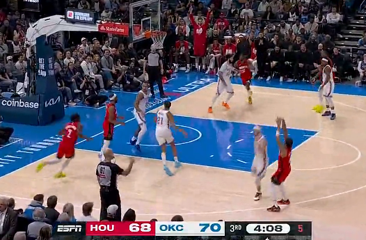 虎扑02月08日讯NBA常规赛,火箭客场挑战雷霆的比赛正在进行中。