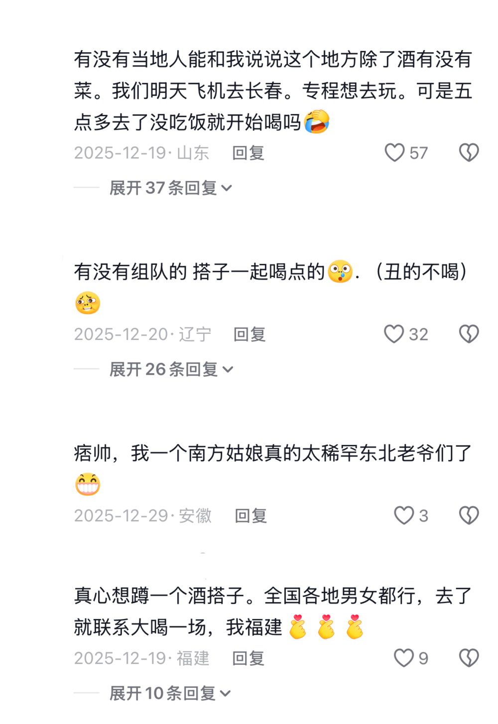 还有不少人在评论区“蹲一个酒搭子”,只想结伴大喝一场。