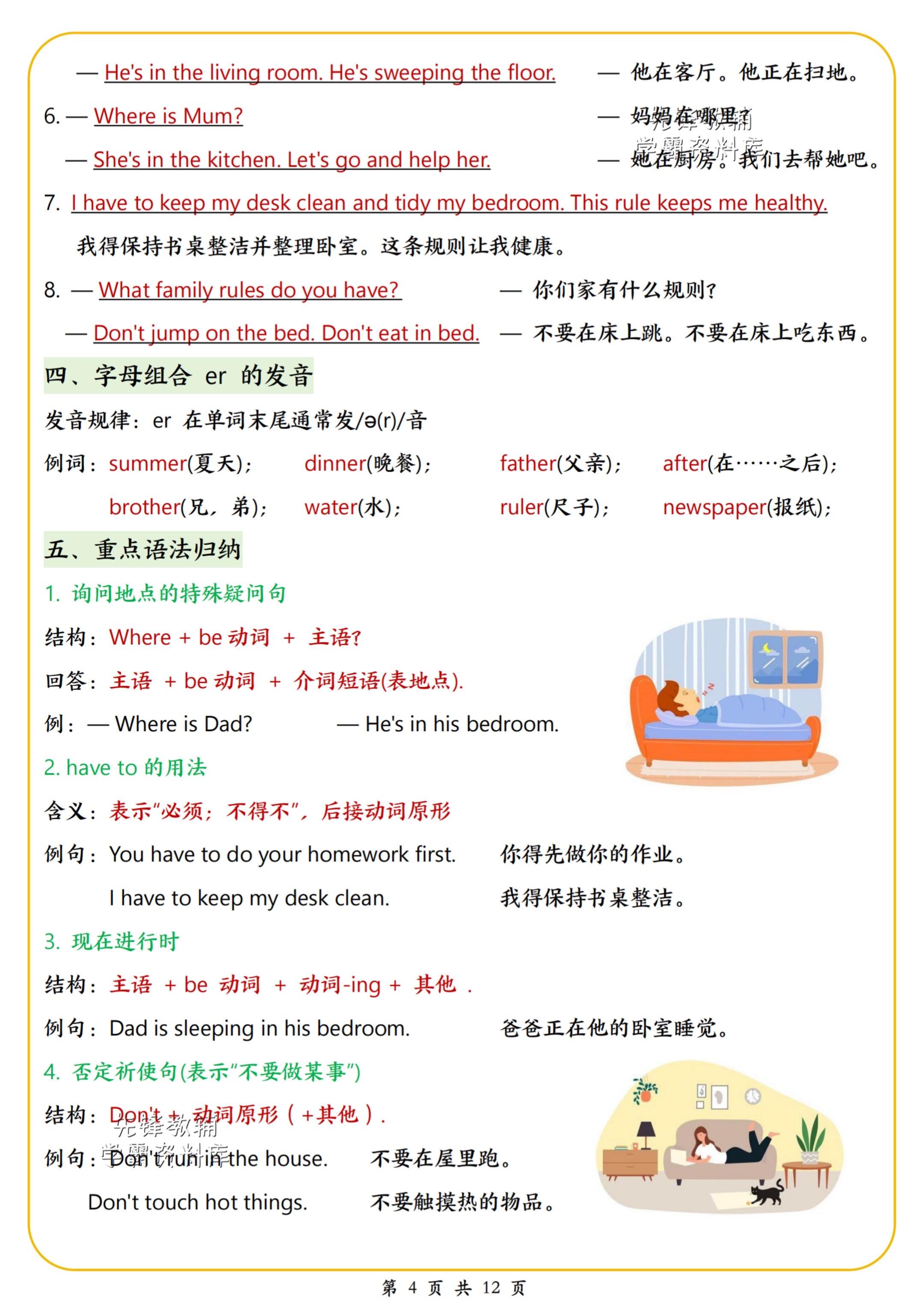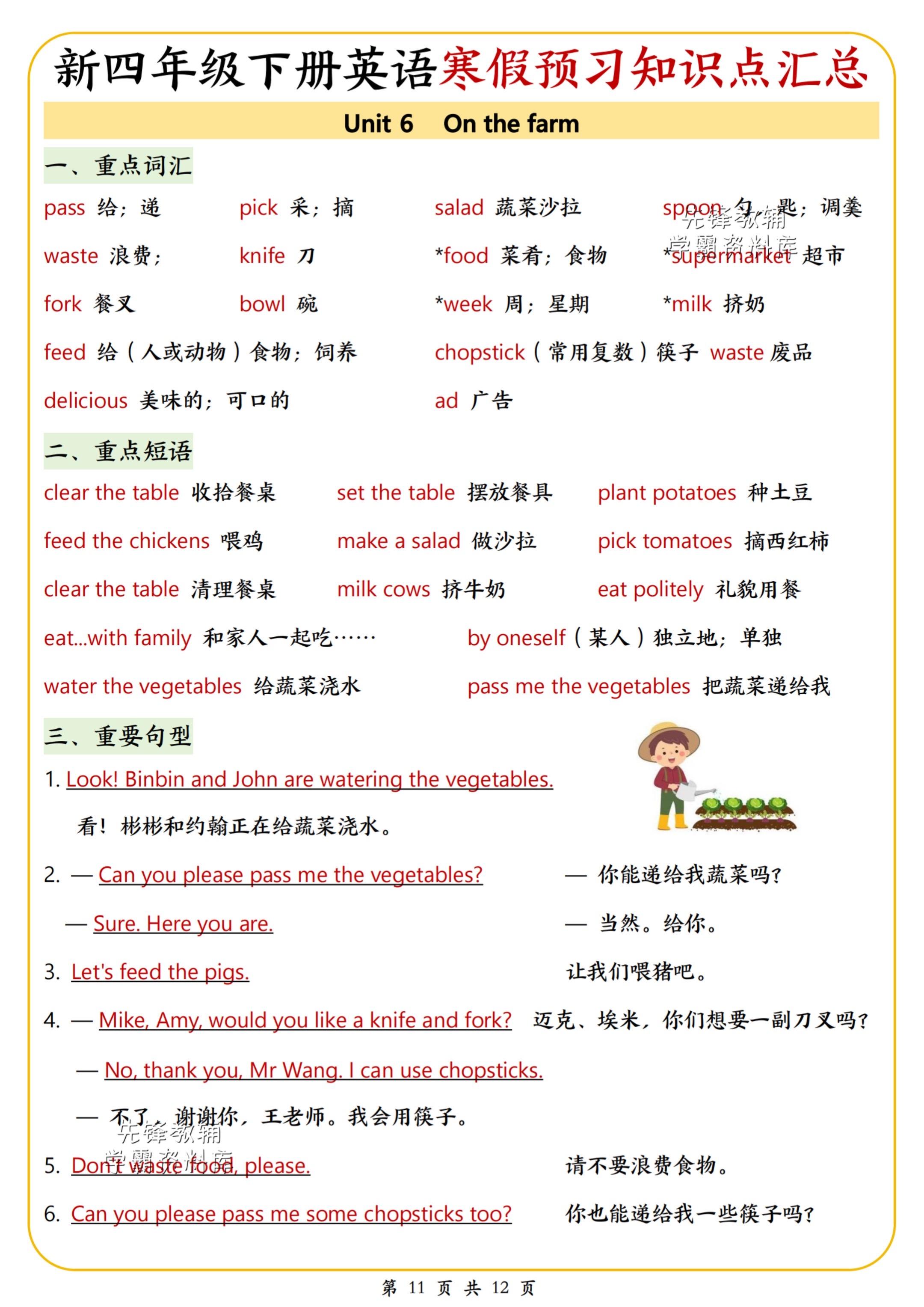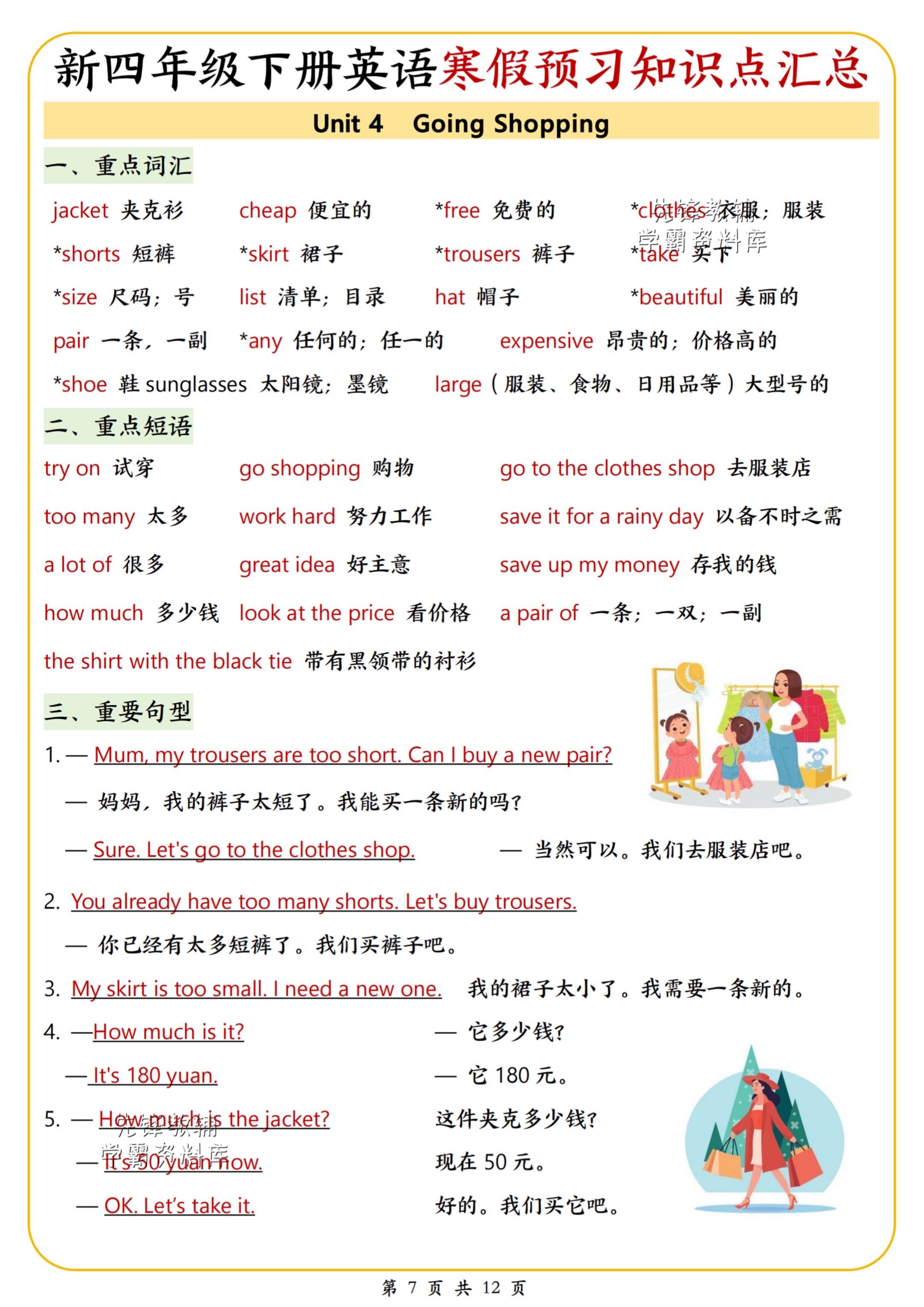 2026春小学四年级下册英语寒假预习知识。 八方文印店。有需要可...