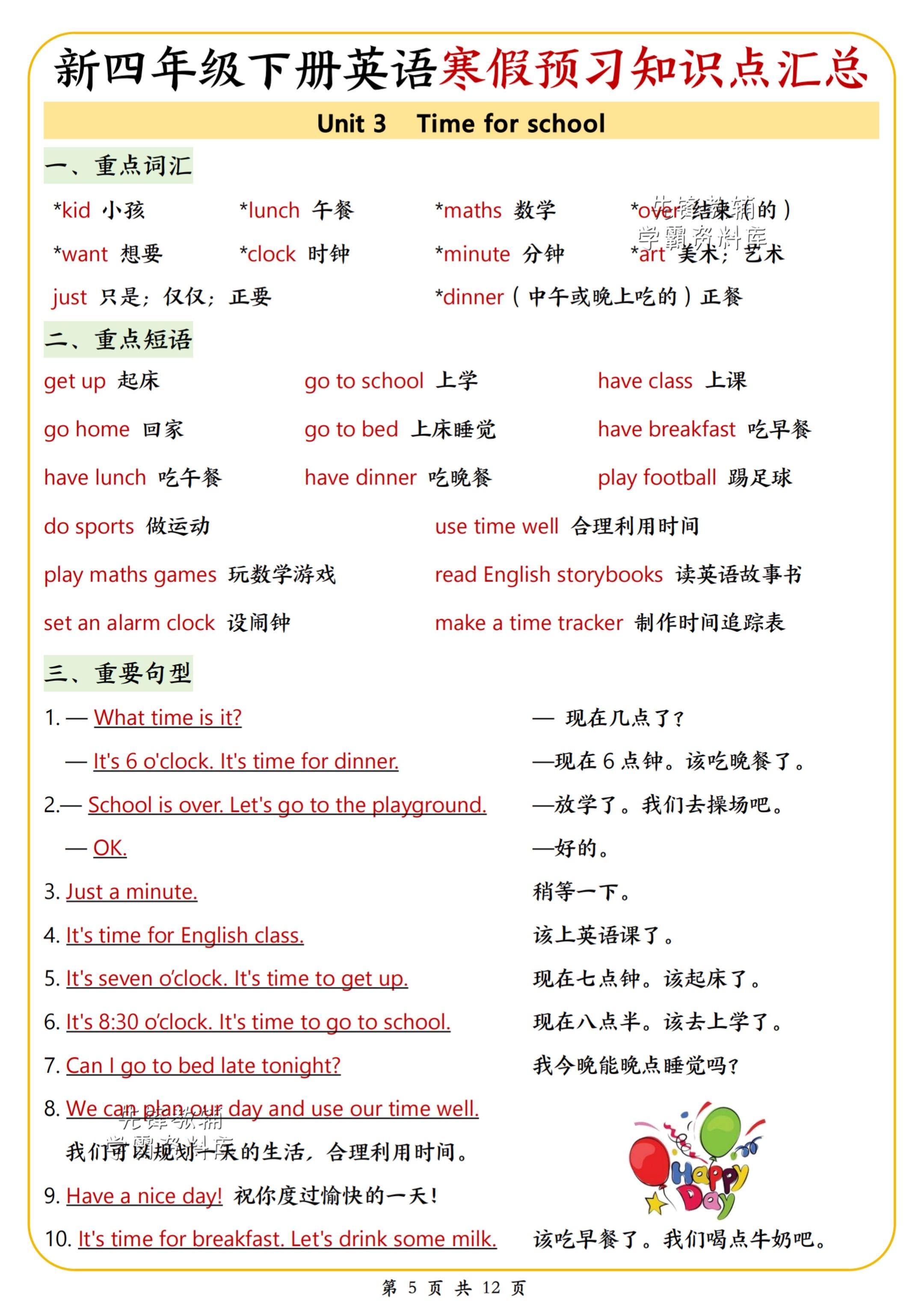 2026春小学四年级下册英语寒假预习知识。每天跟我涨知识 小知识大作用 知识点总结 永春县桃城镇师范路最便宜打印店 八方文印店。有需要可以自行下载打印出来。寒假学习打卡