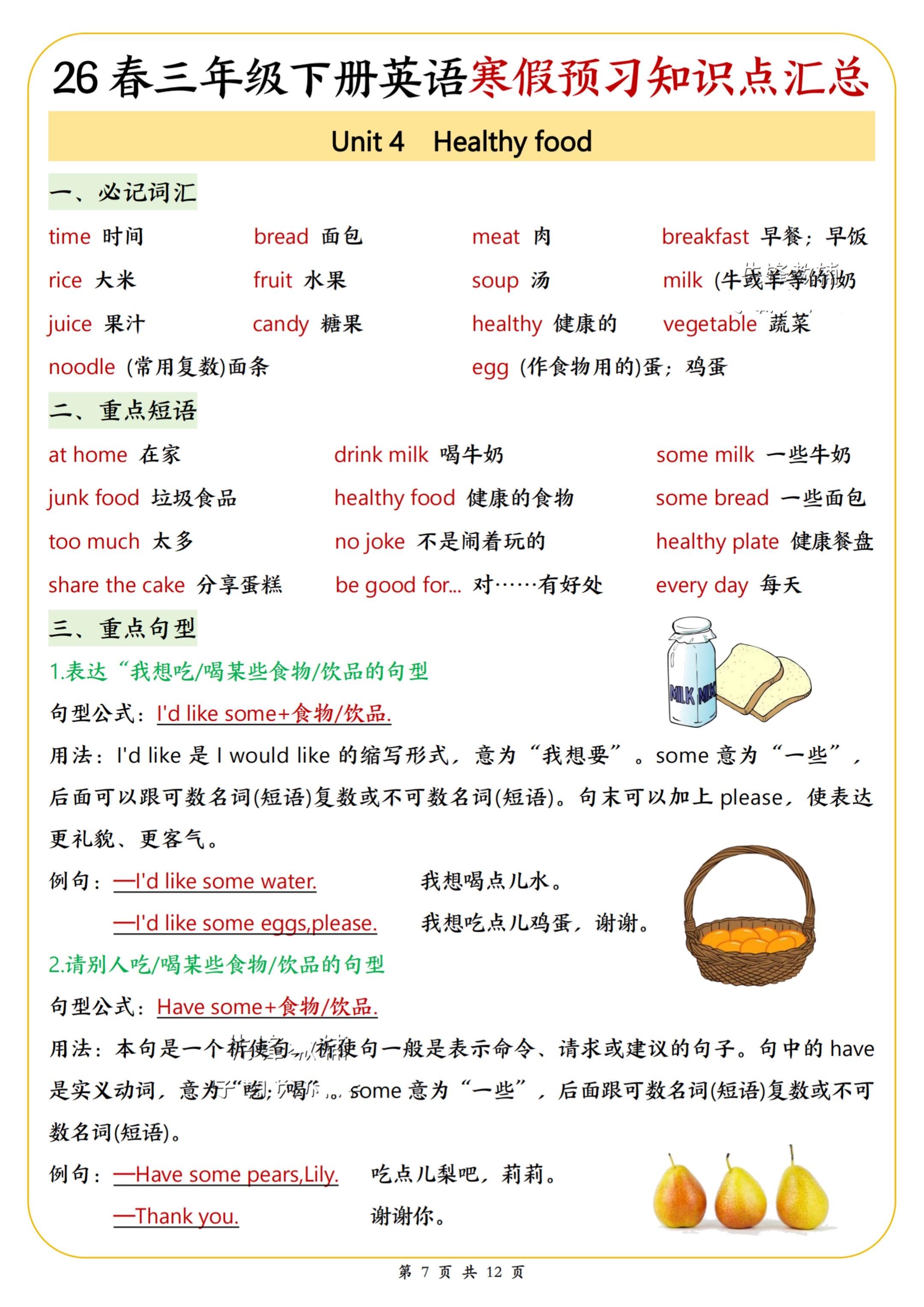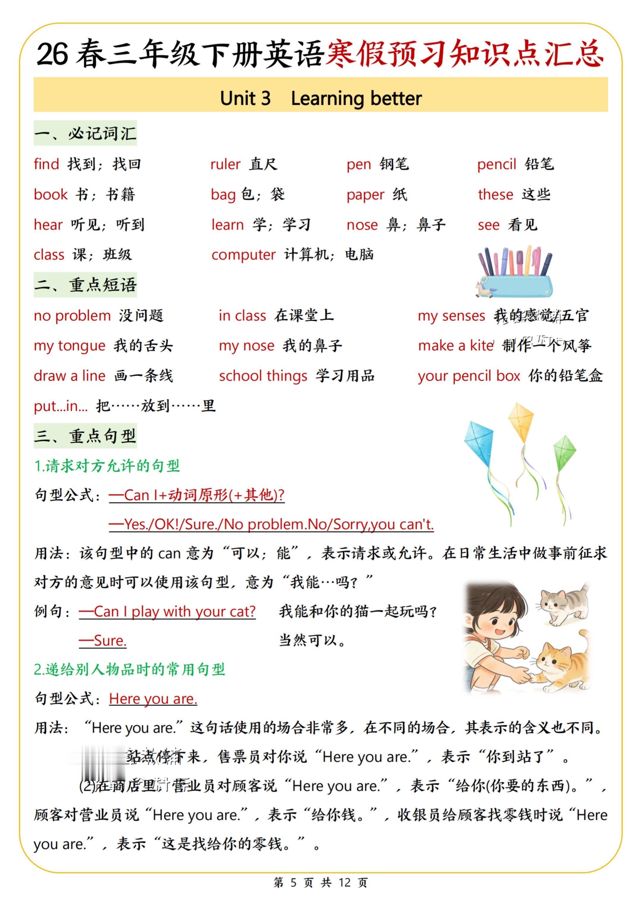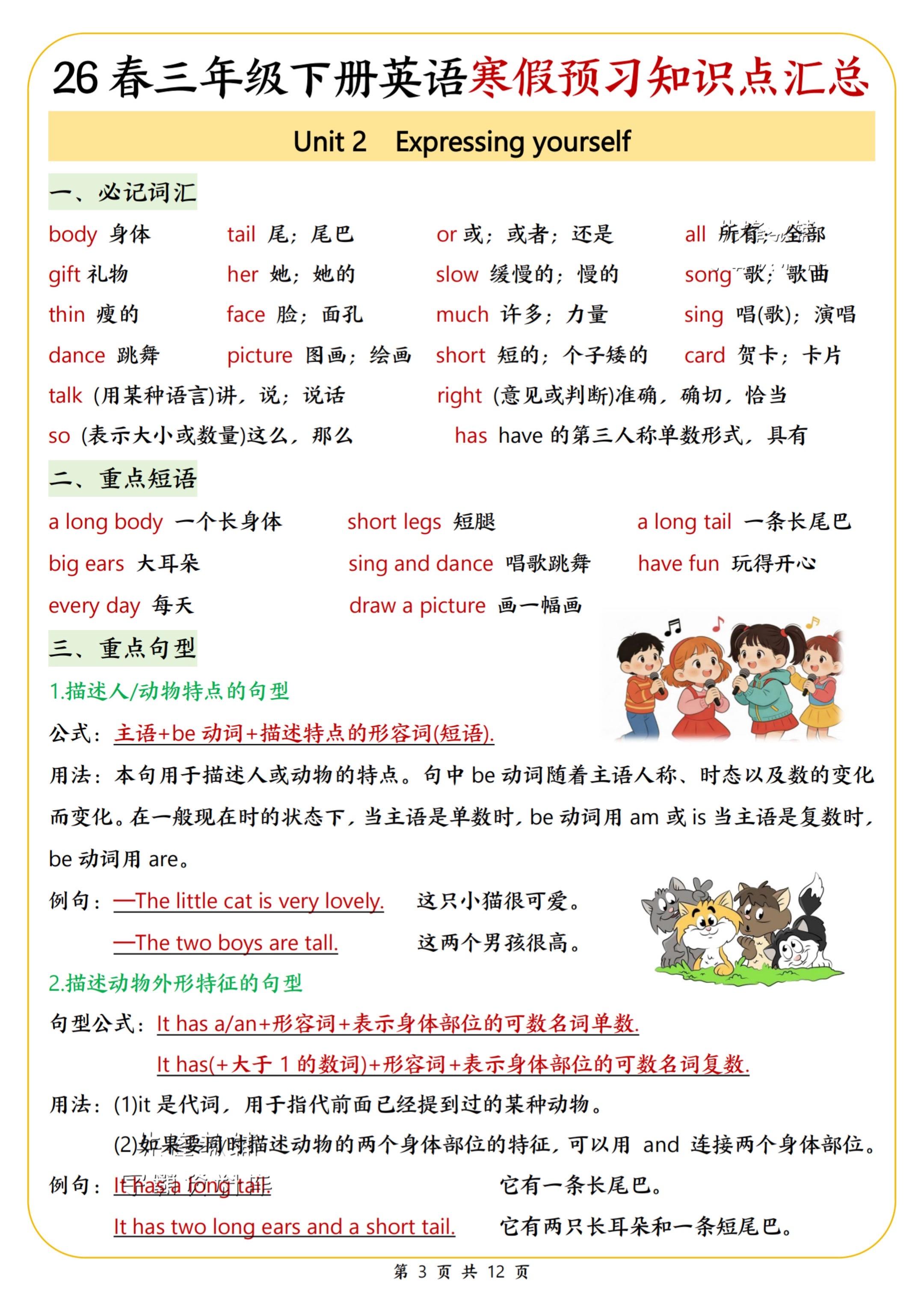2026春小学三年级英语下册寒假预习知识。寒假学习打卡 陪娃学习 知识点总结 家长收藏孩子受益 永春县桃城镇师范路最便宜打印店 八方文印店。有需要可以自行下载打印出来。