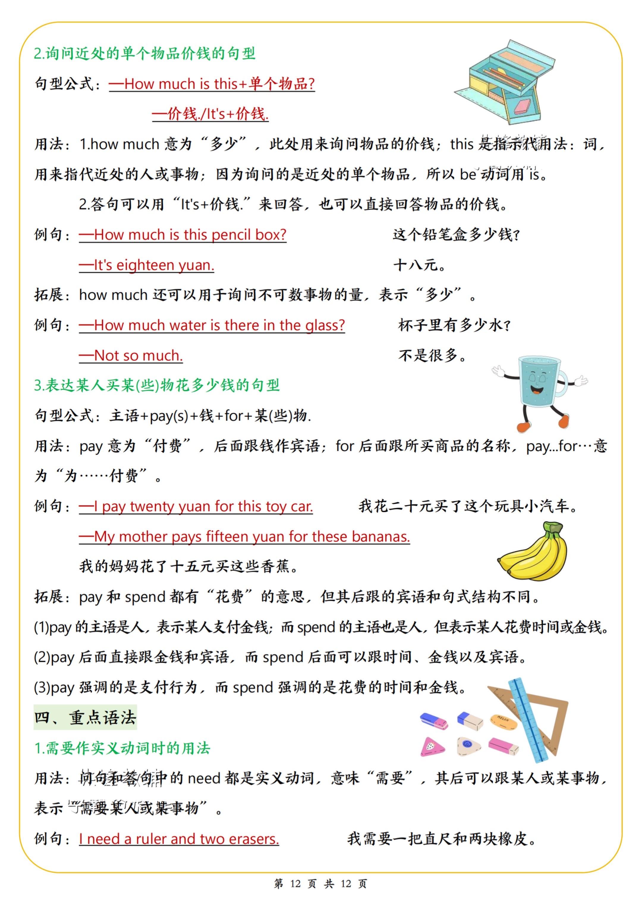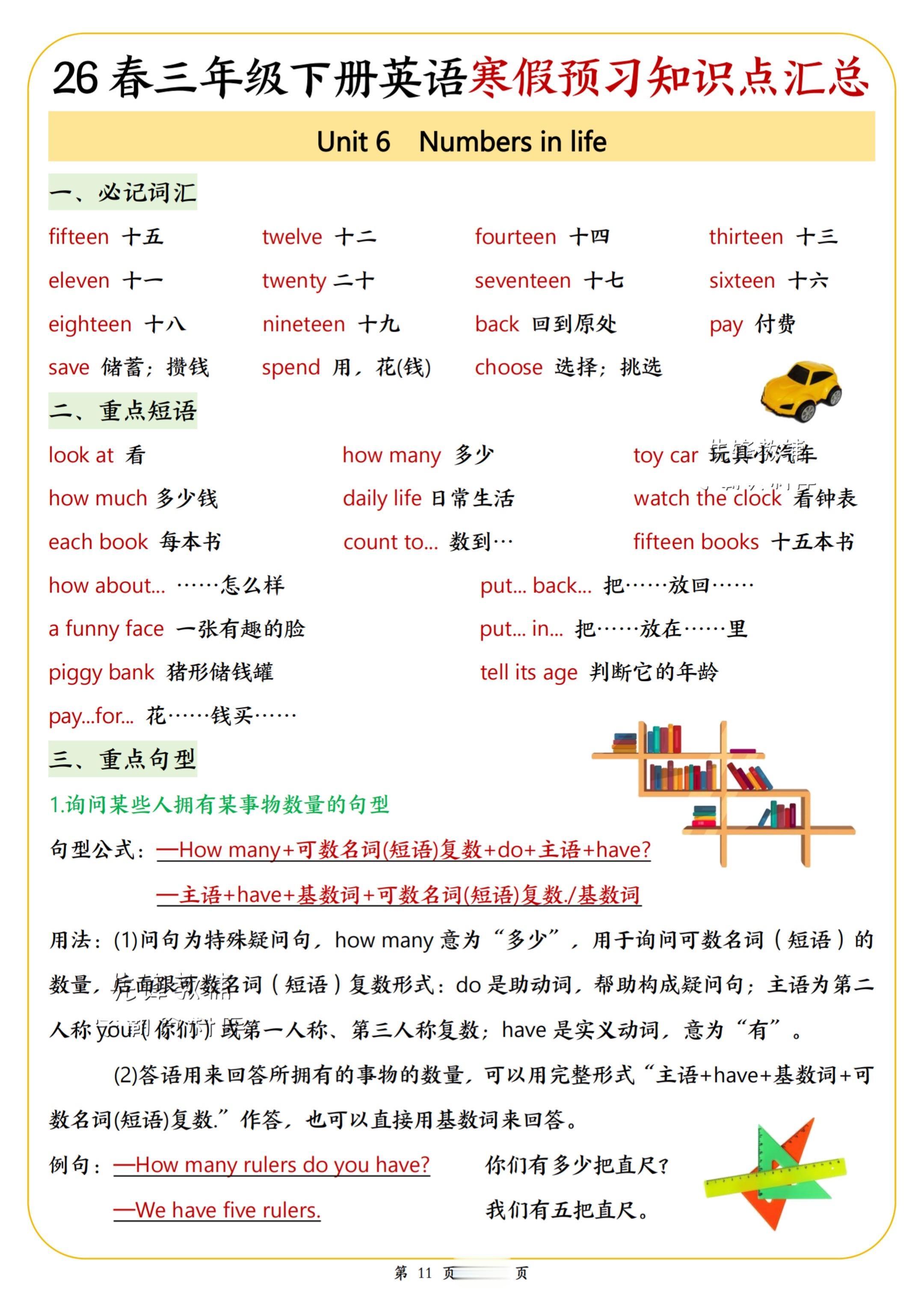 2026春小学三年级英语下册寒假预习知识。 八方文印店。有需要...