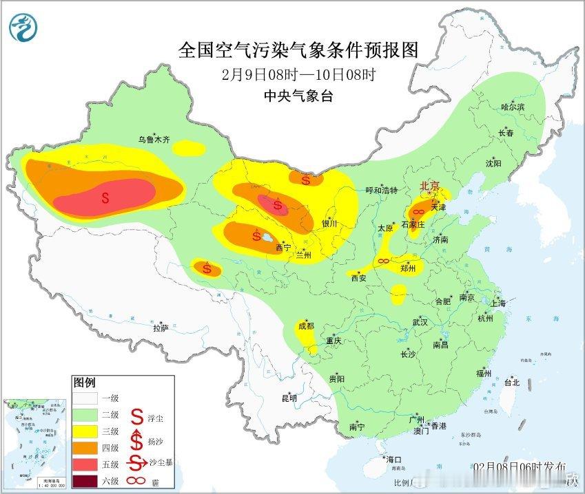 今后三天新疆的沙尘影响还会持续。同时冷空气东移过程中,9日在青海北部、甘肃西部和内蒙古西部也可能引发沙尘。而在冷空气到来前,河南河北南部,霾可能发展增多。10日冷空气抵达后,可能略有减弱并向南转移,不会彻底清除。