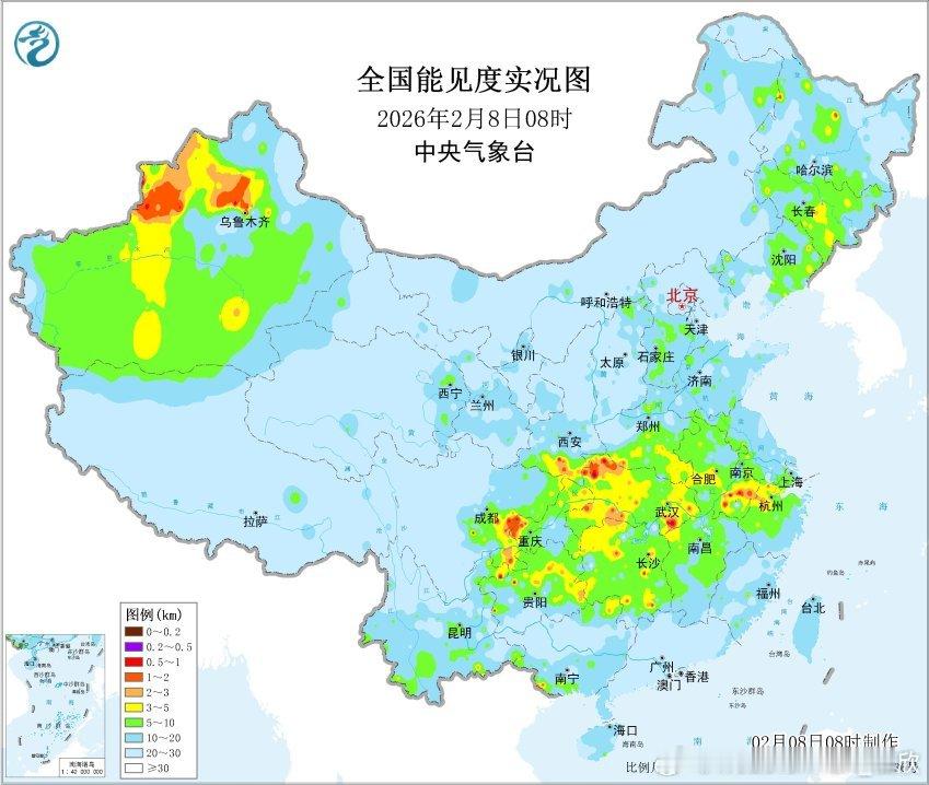 【雾 霾 沙尘】今晨在湖北部分地区出现大雾,其中8时能见度,竹山48米出现特强浓雾,通山99米出现强浓雾。从空气质量看,今晨湖北西部到河南形成一条南北走向的轻度污染带,对应有霾。另外新疆吐鲁番盆地以及塔里木盆地还有沙尘污染。