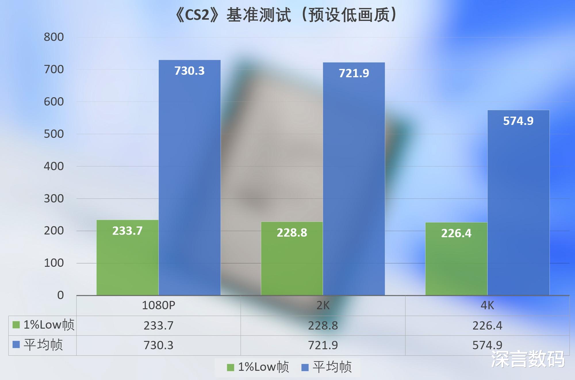 需要提前说明的是,以下的游戏测试均开启英特尔二进制优化技术(IBOT),竞技类游戏《CS2》,分别测试4K、2K与1080P三种分辨率下的性能表现,画质均为预设低档位,使用创意工坊内的基准测试地图,在1080P分辨率下平均游戏帧率为730.3FPS,1%Low帧为233.7FPS,2K分辨率下平均游戏帧率为721.9FPS,1%Low帧为228.8FPS,4K分辨率下平均游戏帧率为574.9FPS,1%Low帧为226.4FPS。