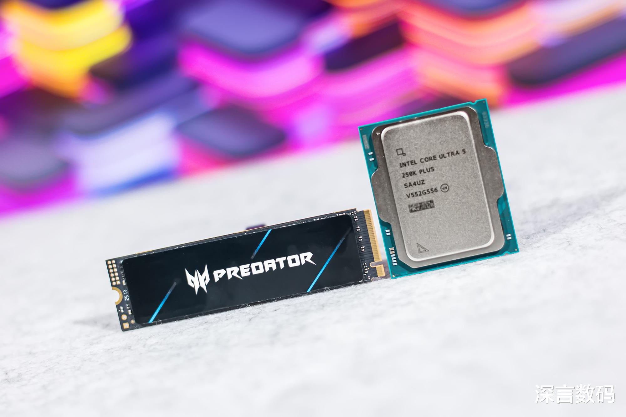 宏碁掠夺者GM9000 2TB PCIe5.0固态硬盘,其采用DRAM-Based(配备独立DRAM缓存芯片)架构方案,单面颗粒布局设计,支持PCIe5.0传输规格与NVMe2.0协议标准,标称顺序读取写入速度分别可达14000MB/s与13000MB/s,将其安装在主板首个M.2固态硬盘插槽上。