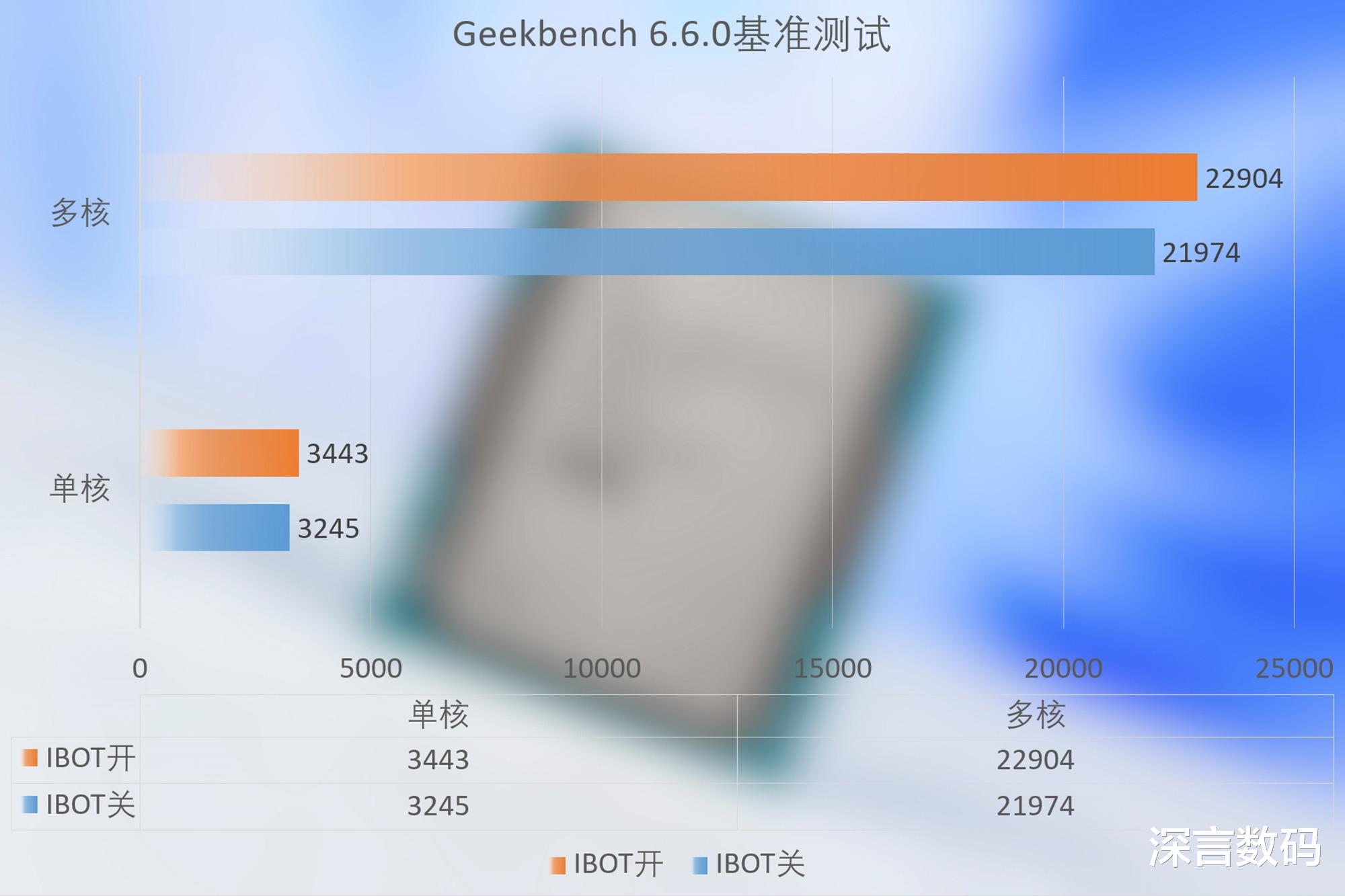 在英特尔二进制优化技术(IBOT)支持程序列表中还有Geekbench基准测试软件,顺道测试了6.6.0版本,英特尔酷睿Ultra5 250K Plus处理器在默认状态下单核得分为3245,多核得分为21974,当开启英特尔二进制优化技术后,单核得分为3443,多核得分为22904,分别提升了6.1%与4.2%。