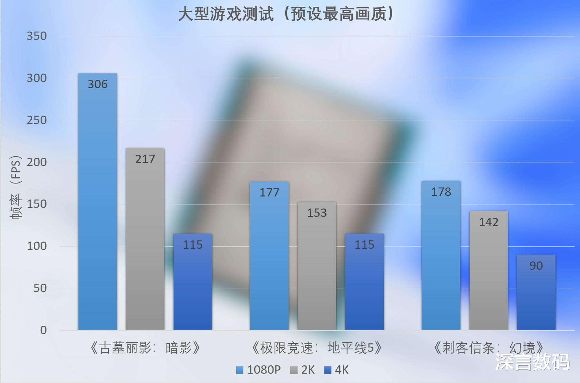 测试了其它大型单机游戏,在4K分辨率+最高画质设定下,《极限竞速:地平线5》与《古墓丽影:暗影》的平均帧率均为115FPS,《刺客信条:幻景》平均帧率为90FPS,对比了手上的英特尔酷睿Ultra7 265K处理器与Ryzen9 9950X3D处理器,不论是1080P分辨率或是4K分辨率,帧率的差距几乎可以忽略不计。