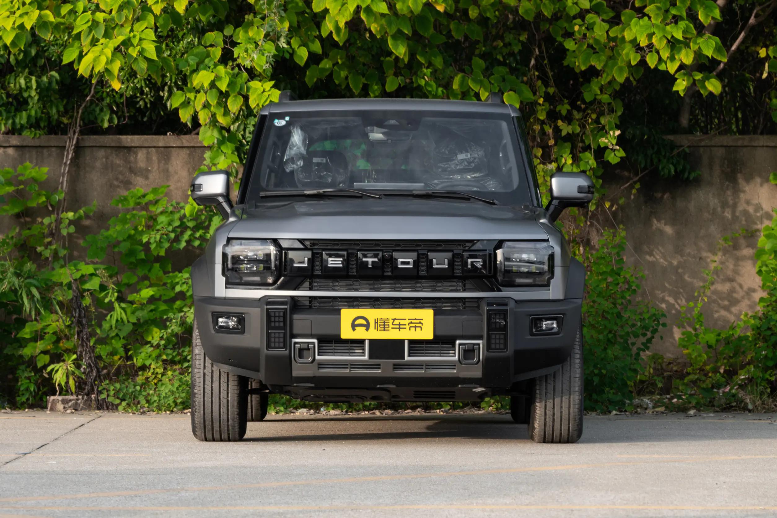 这台入门版并没因为定价亲民就在颜值上打折扣,外观和高-配车型完全相同。4795mm的车长、2006mm的车宽搭配1880mm的车高,经典的方盒子造型,自带敦实硬朗的气场,看着就很有力量感。前脸的JETOUR立体格栅、矩阵式LED大灯,还有车尾的直瀑贯穿式尾灯以及外挂“小书包”,这些标志设计一个没少,在路上的辨识度很高。平时开出去,旁人根本看不出这是入门配置,完全不丢面儿。