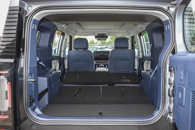 空间是家庭用户看重的,这台入门版的轴距和高-配一样,都是2800mm,所以乘坐空间没缩水。我身高180cm,坐前排调完座椅,头部还有两拳余量,腿部也不挤;换到后排,头部一拳多,腿部两拳多,跷二郎腿没问题。后排座椅能调靠背角度,还能比例放倒,平时带老人孩子出门,后排乘客能找到舒服的姿势,长途坐车也不会太累。
