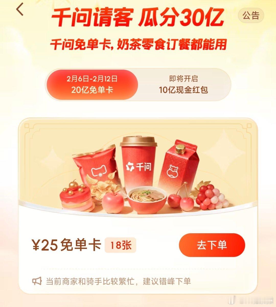千问大家如果免单卡用不了,可以试试进店页面然后让千问下单,这样可以重复下单,并且