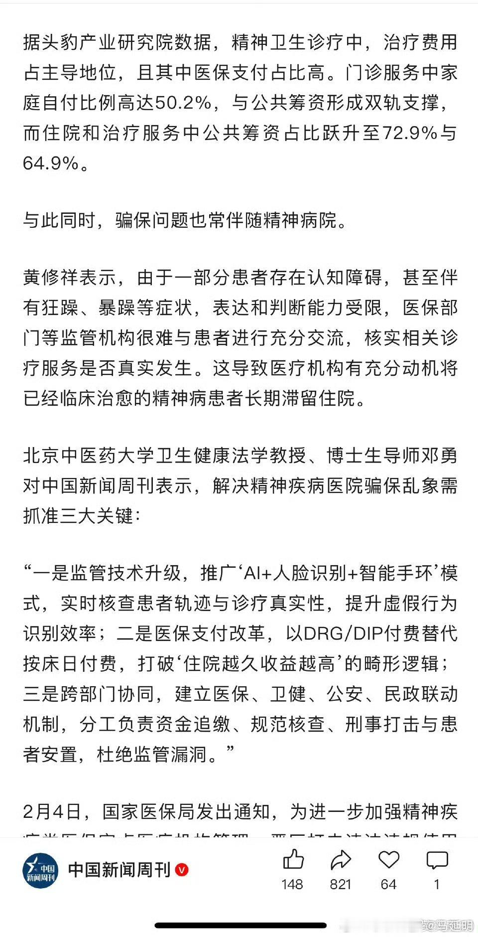 普通人会不会被精神病,诊断、收治、强制住院能不能严守《精神卫生法》的底线?资本逐利不可怕,可怕的是监管缺位、底线失守、把精神医疗变成流量与医保的提款机。