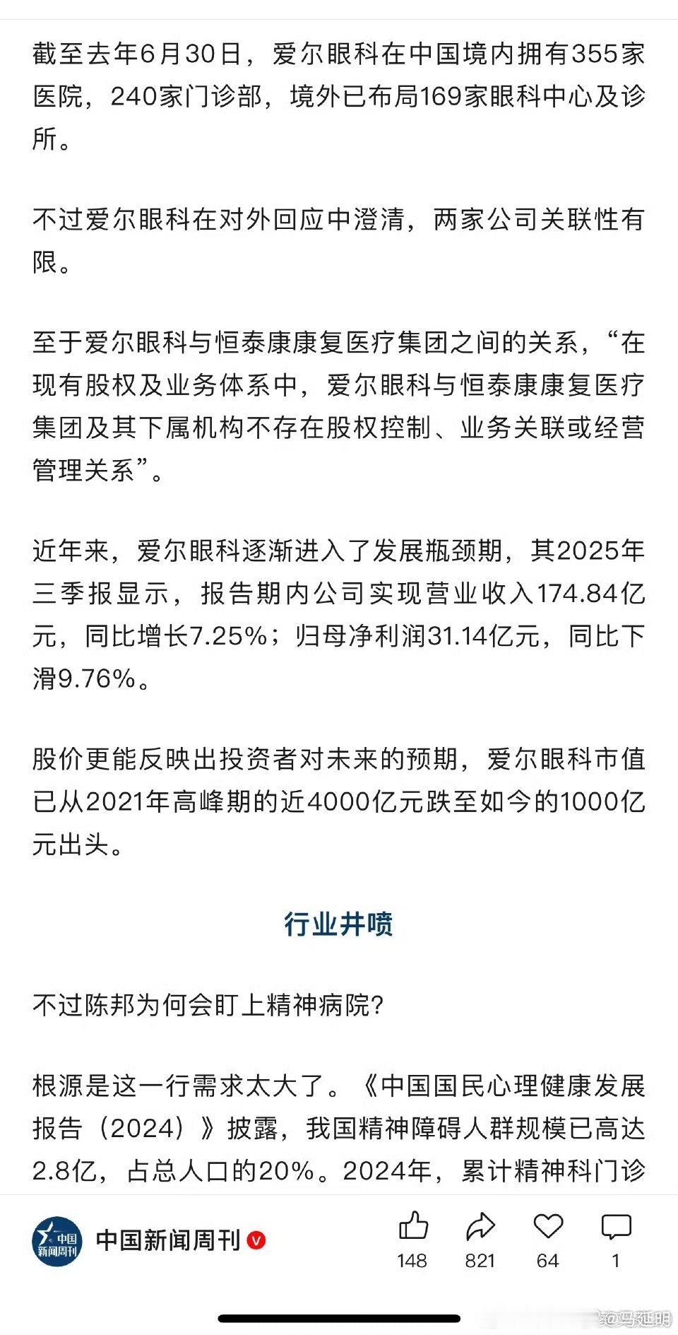 中国新闻周刊:《眼科巨头,盯上了精神病?》