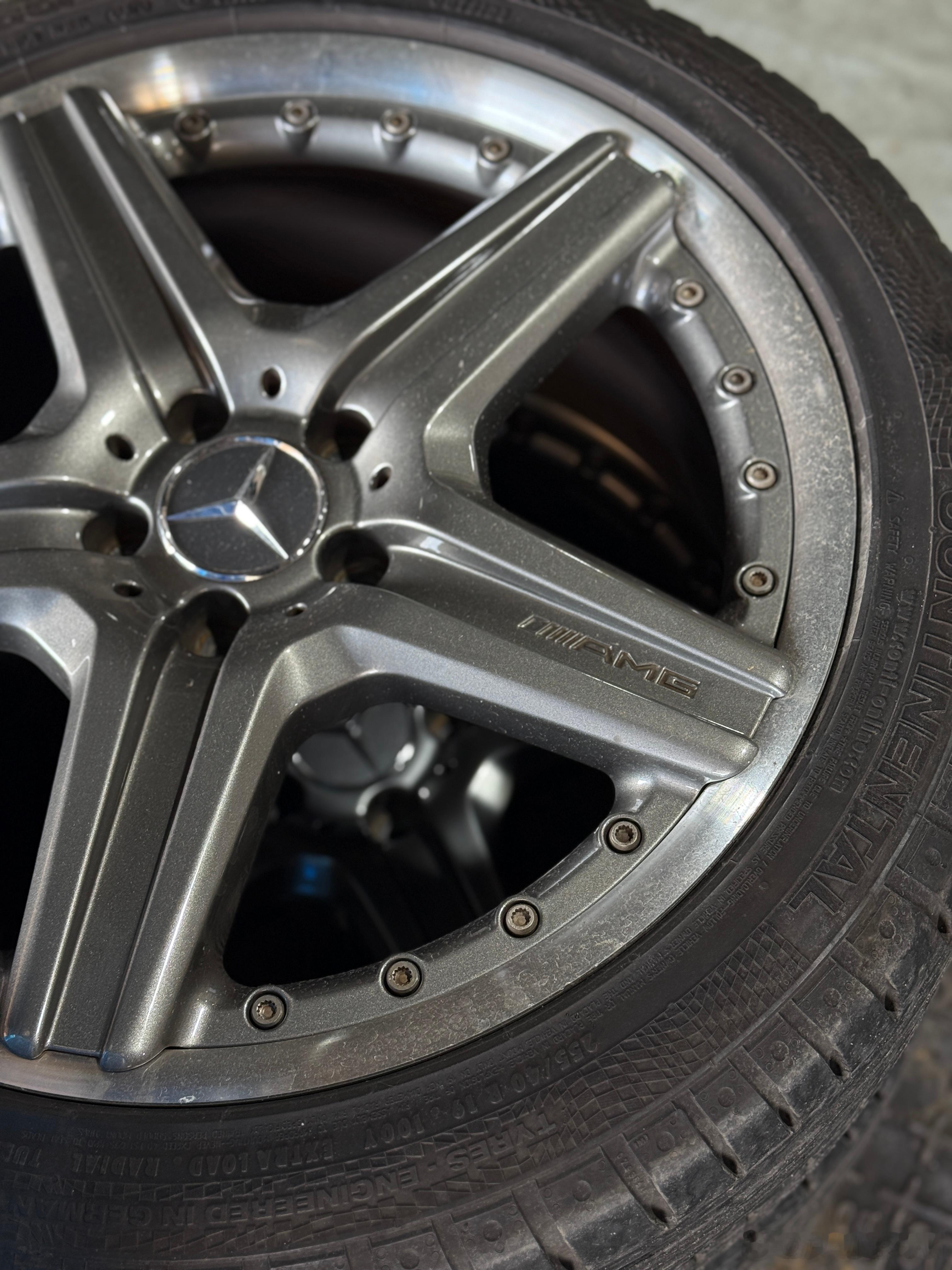 ABC的两根前避震把防尘罩都拆掉了,很多二手车商说ABC是“空气悬架”,但能很直观看到这玩意儿是液压减震。油液通过这些油管来主动调节悬架的高度,并且依旧保留了螺旋弹簧机械作为冗余方案,最上方两个红色的AMG专属顶胶不出意外烂了。不知道车主打算修复还是换新的ABC避震总成,两根2w左右吧。