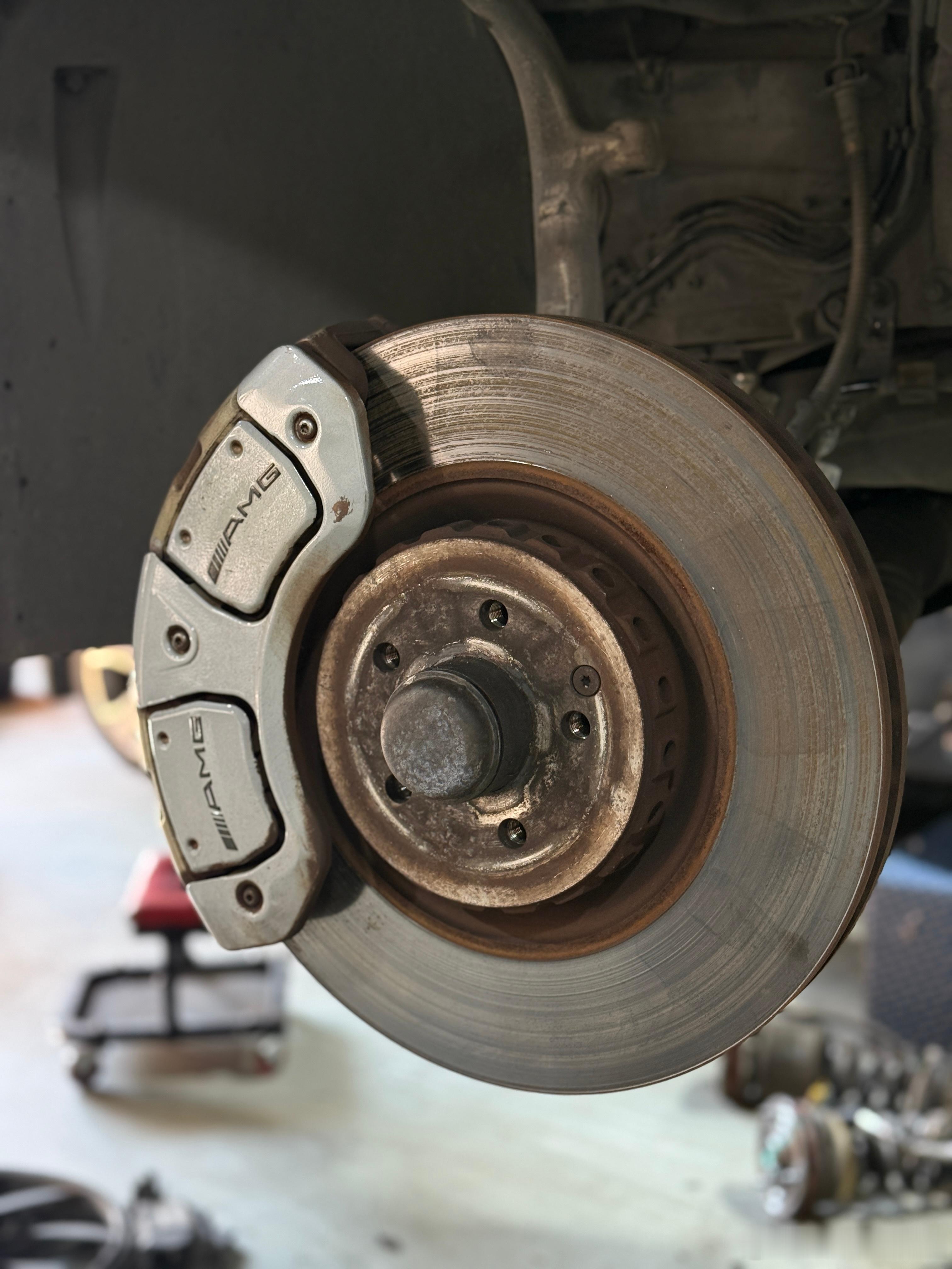 来修车店定损,偶遇一台W221前期款S65,来看看它的前刹车和悬架系统。