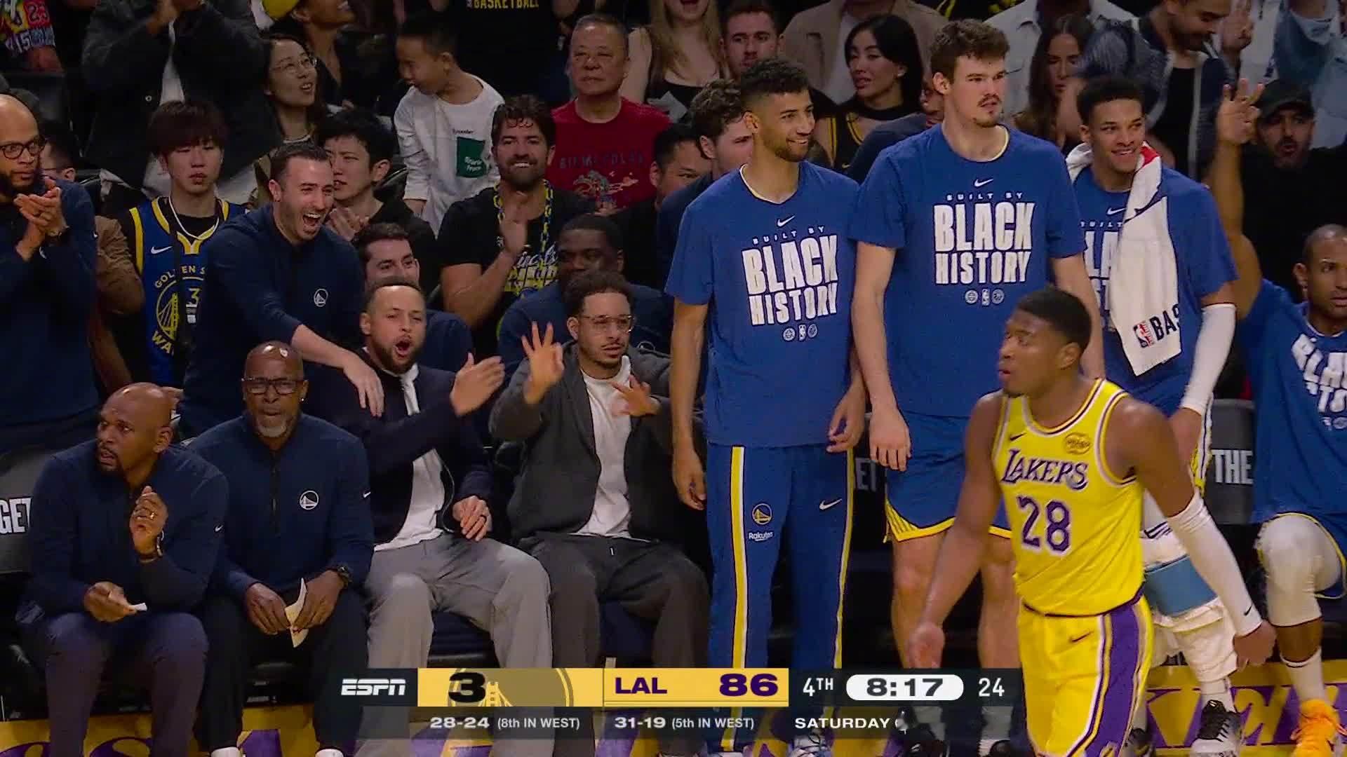 格林底角三分🎯第四节剩下8:17,勇士83:86湖人;加油💪勇士vs湖人